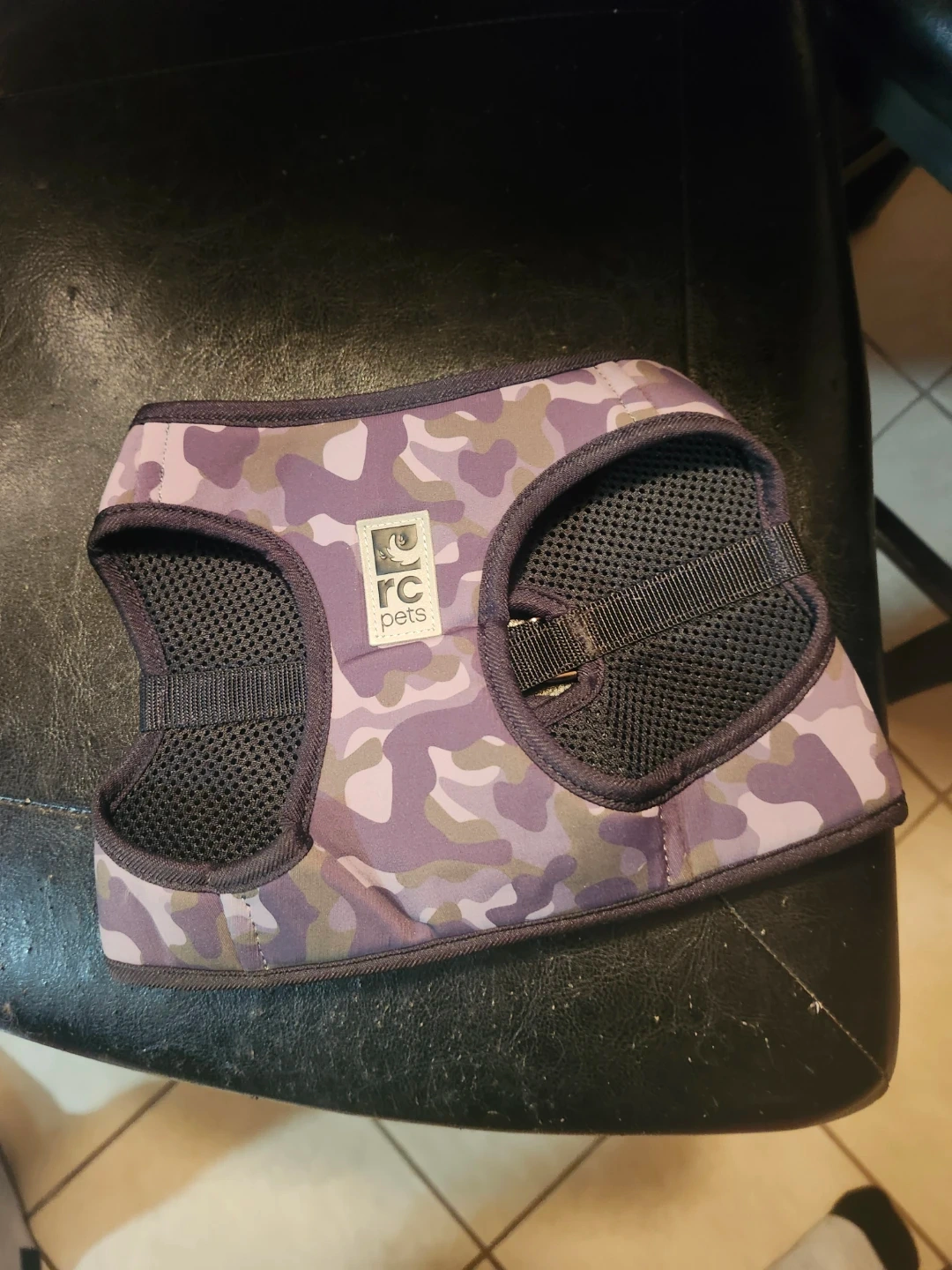 RC Pets dog harness in a cool camo pattern. It's an XL size and made with 84% nylon and 16% spandex for the shell, and 100% polyester for the lining. Designed in Canada!