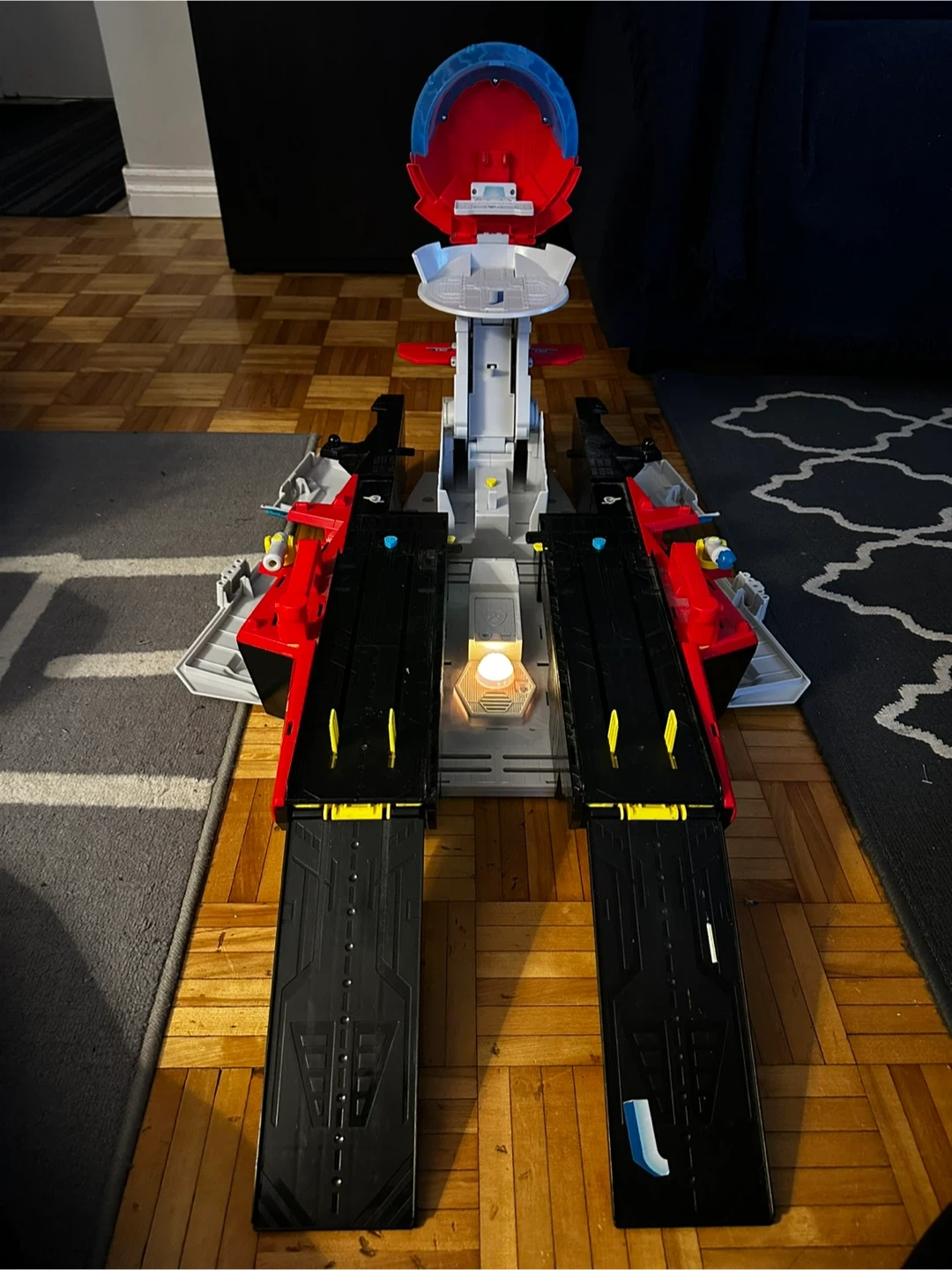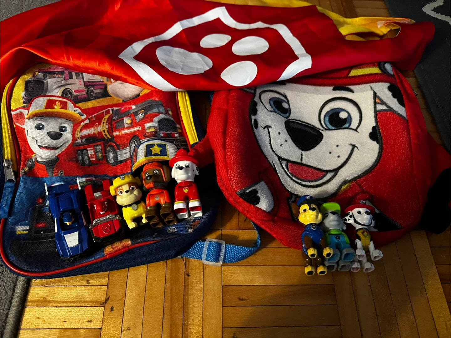 Paw Patrol aircraft head quarters including several character figures, backpacks and more! Perfect for any Paw Patrol lover!