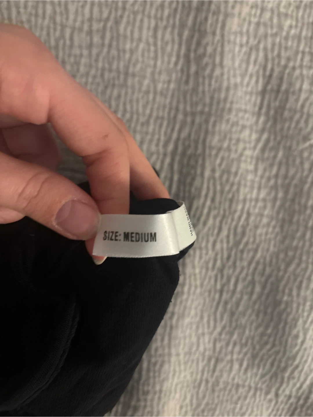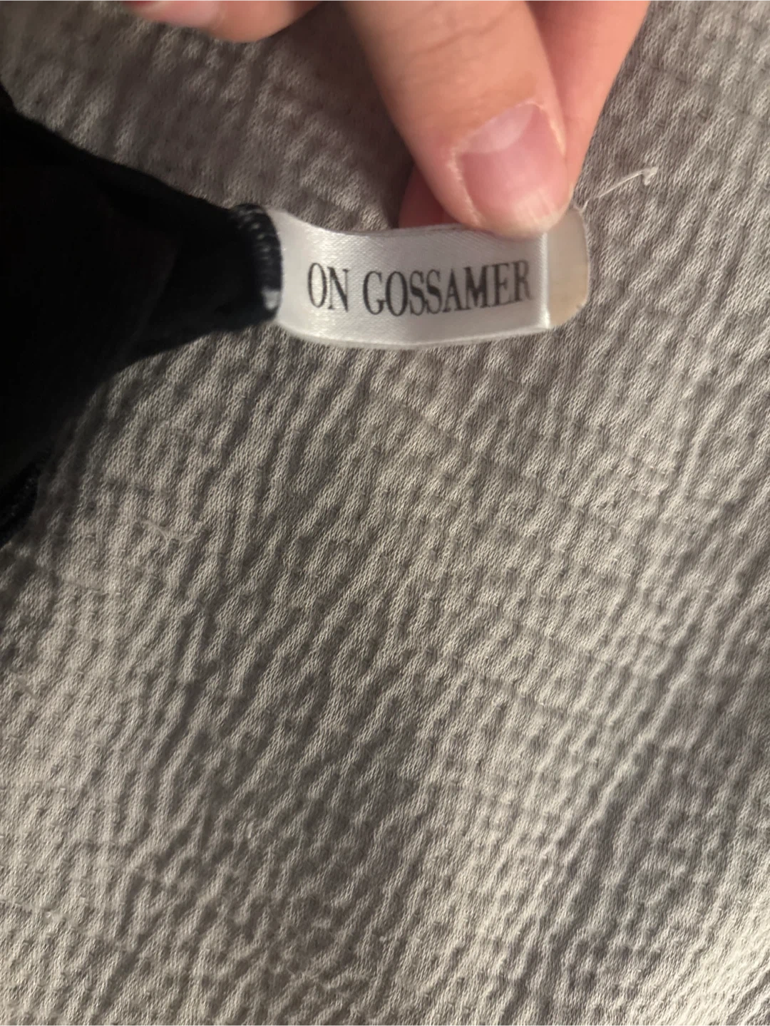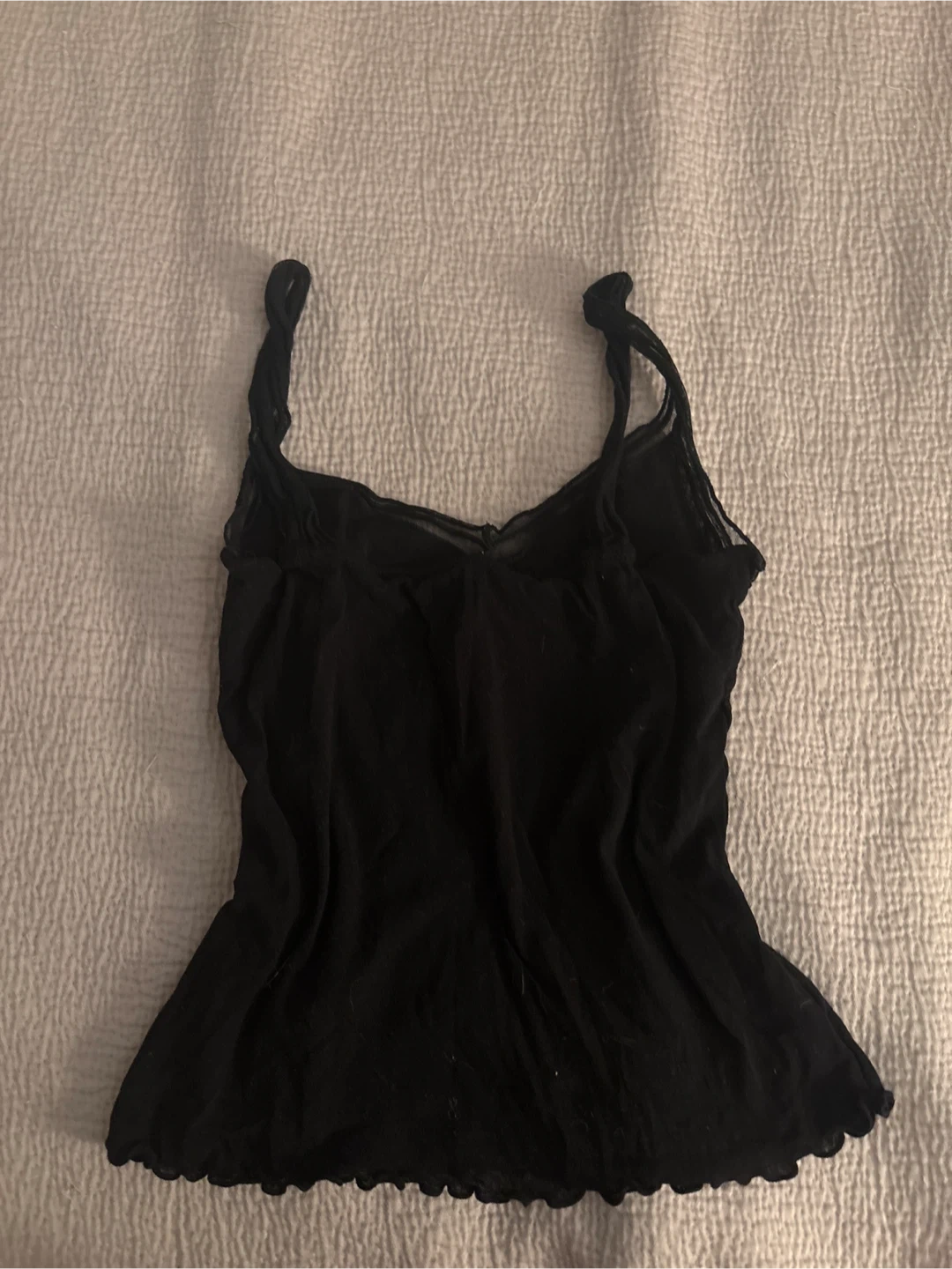 This is an ON Gossamer black cami top. It's a size medium. The material is soft and lightweight, perfect for layering or wearing on its own.