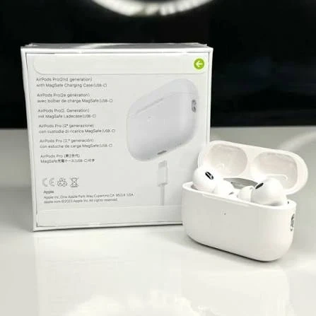 Apple AirPods Pro (2nd generation) with MagSafe Charging Case (USB-C). Includes original box. These earbuds offer active noise cancellation and transparency