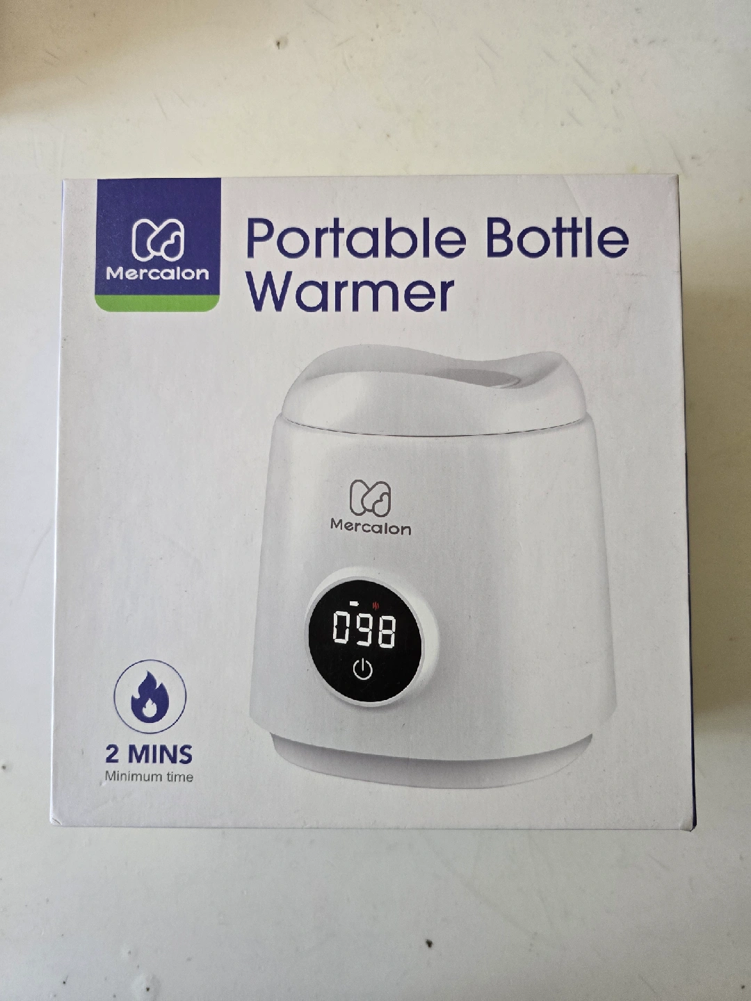 Selling Mercalon portable bottle warmer, still in its original box! It's super convenient for warming bottles on the go. It heats up in just 2 minutes, making it quick and easy to use. Perfect for parents needing a reliable and portable solution for feeding time.