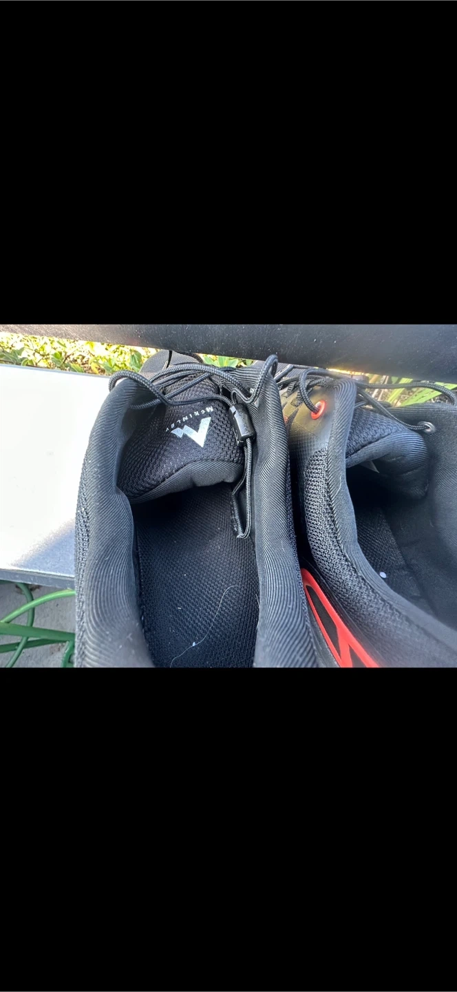 These are black and red McKinley trail running shoes. They feature a durable mesh upper and a rugged rubber sole for excellent grip. Perfect for hitting the trails!