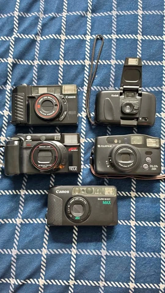 Everything works. Batteries can be supplied for testing. Canon auto focus - $100, Minolta Freedom Tele - $80, Canon Sure Shot Max - $80, Fujifilm Dl-270 - $80, Kodak Focus Free - $40 (not auto focus).