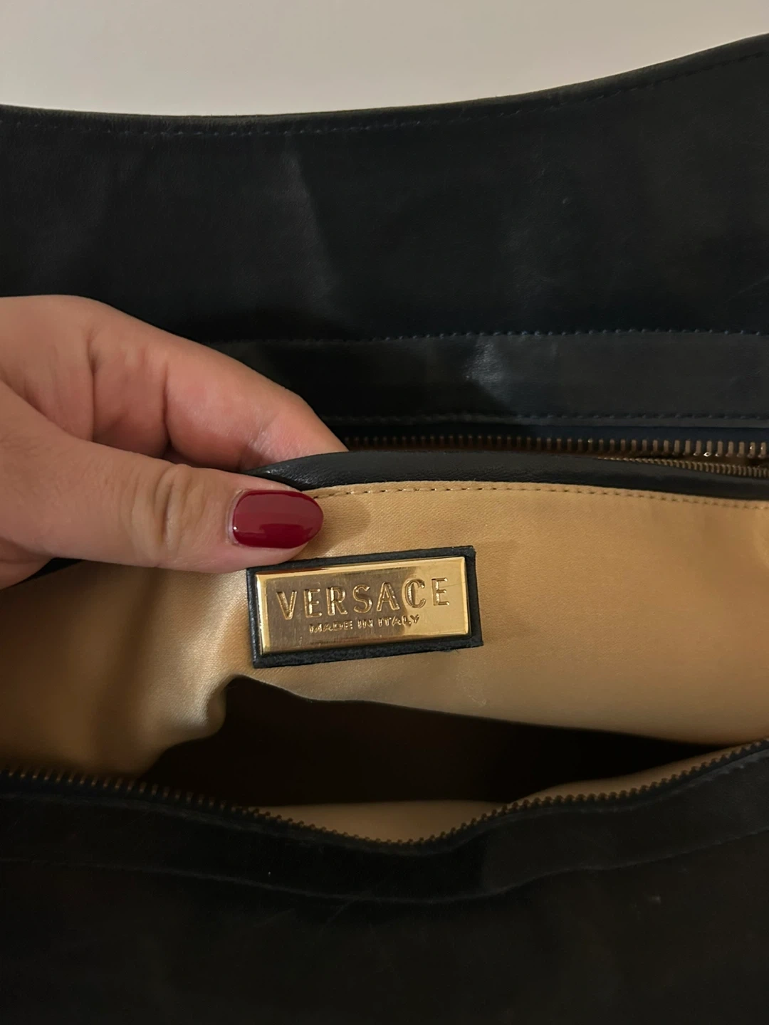Authentic Vintage Black Versace Medusa Shoulder Bag