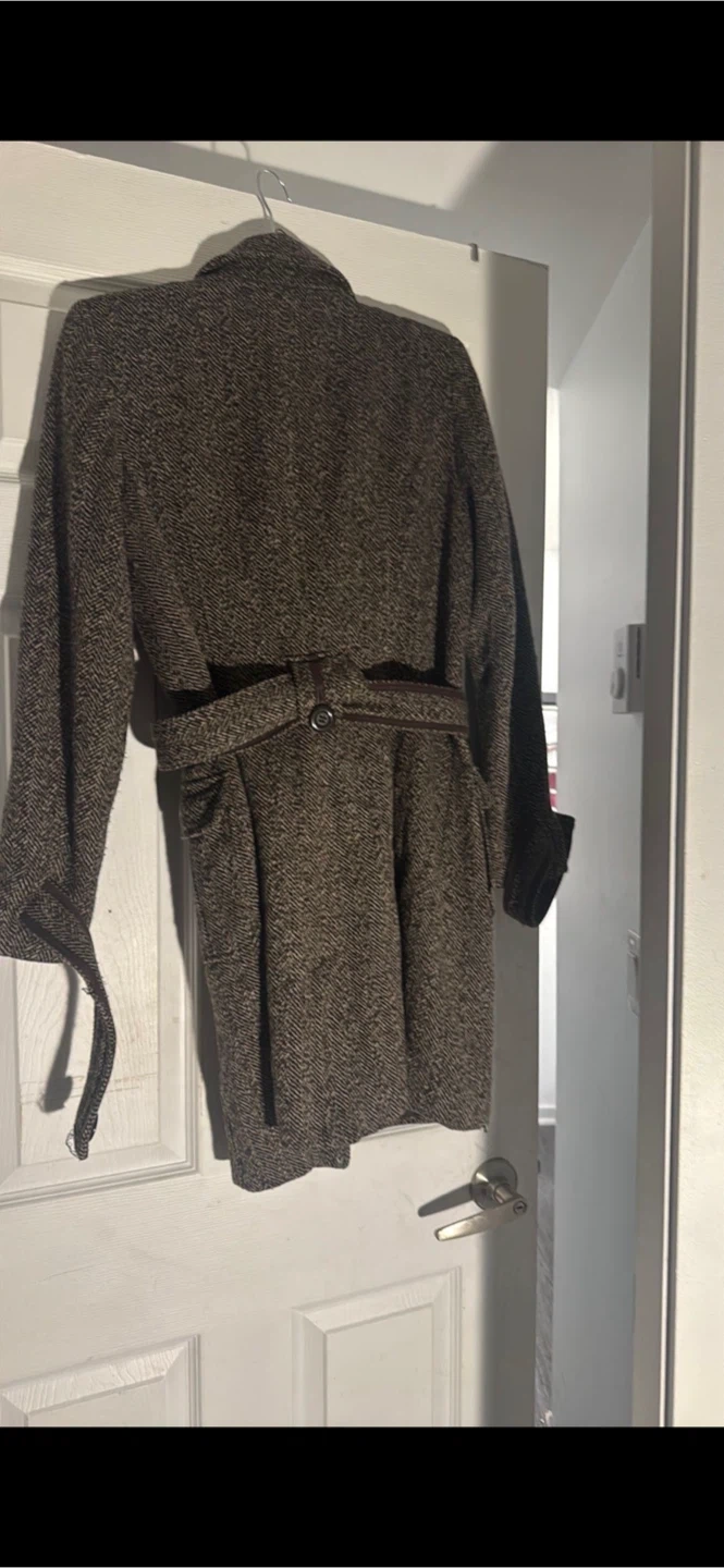 Selling a Zara Basic coat in size L. It's a wool blend and features a stylish herringbone pattern. Perfect for staying warm and fashionable!