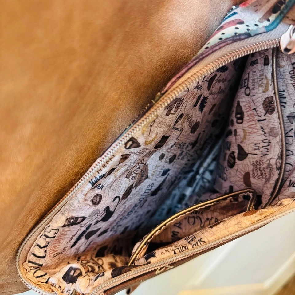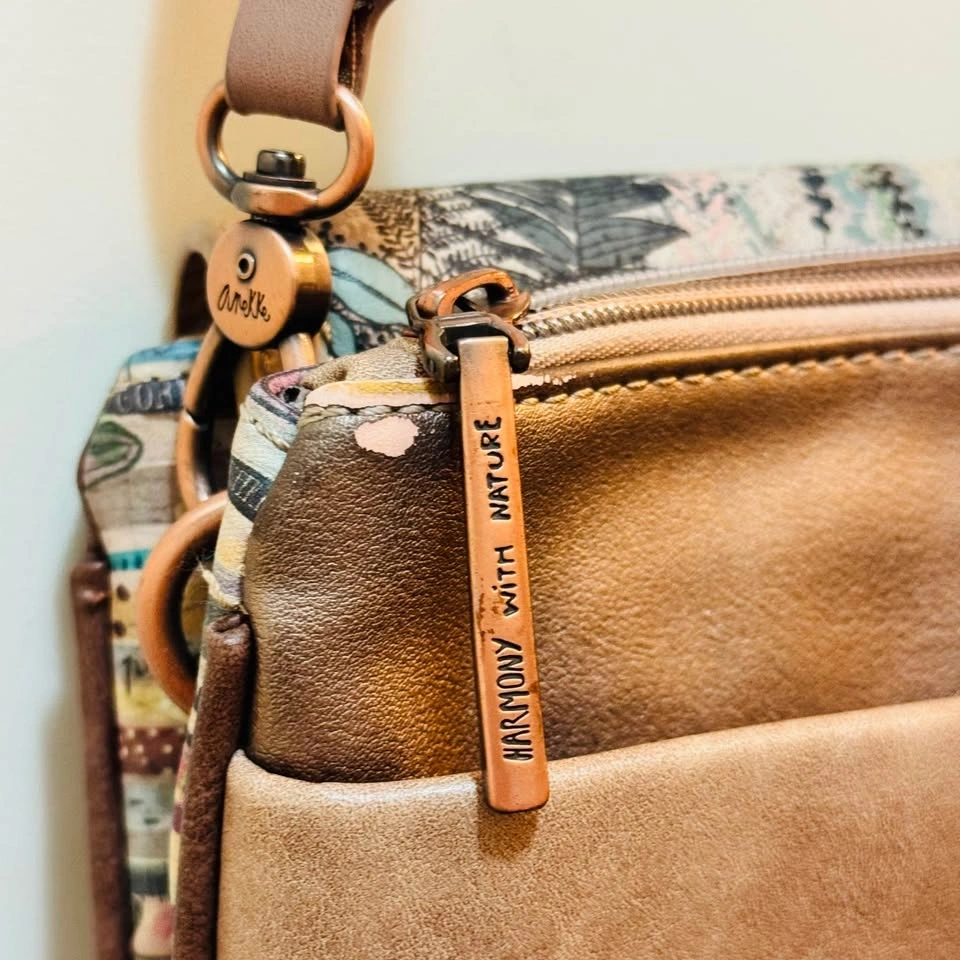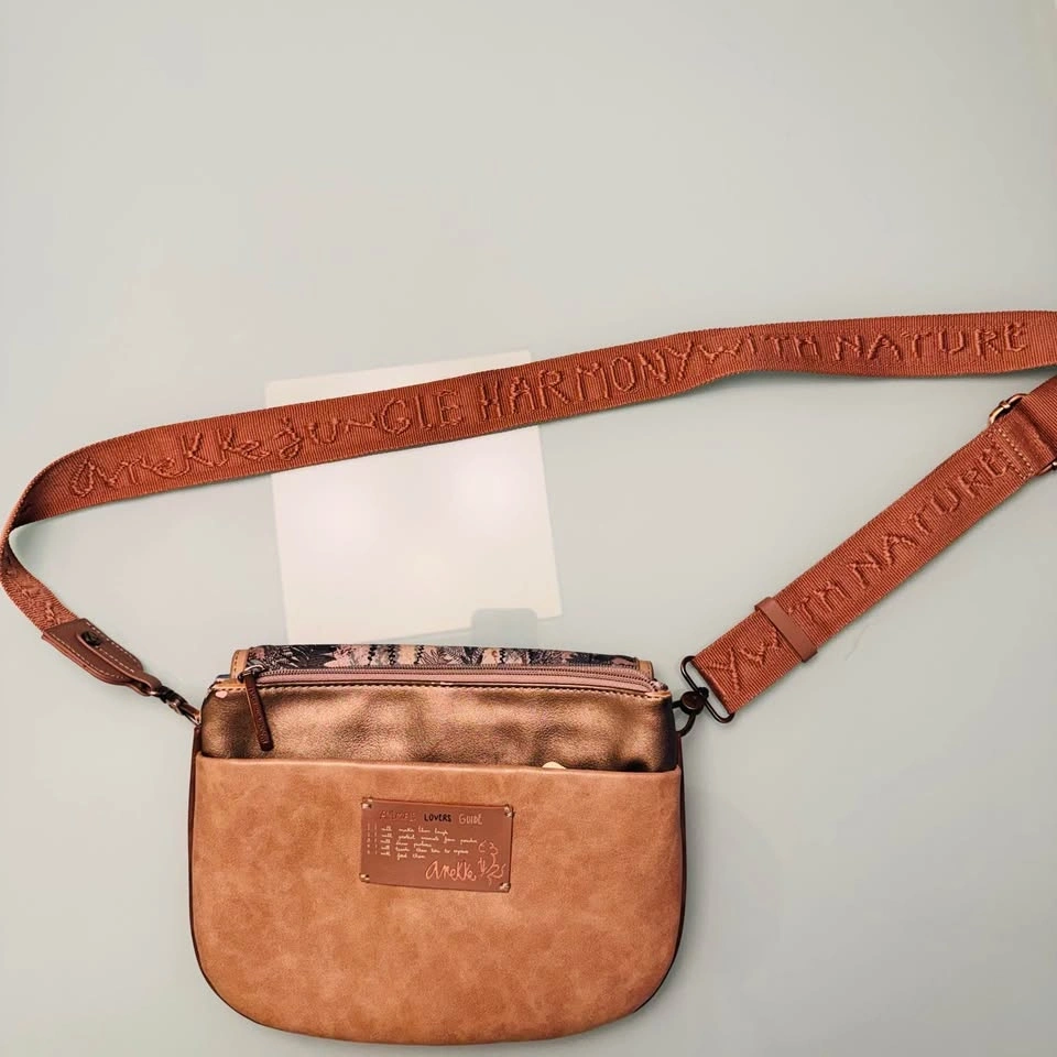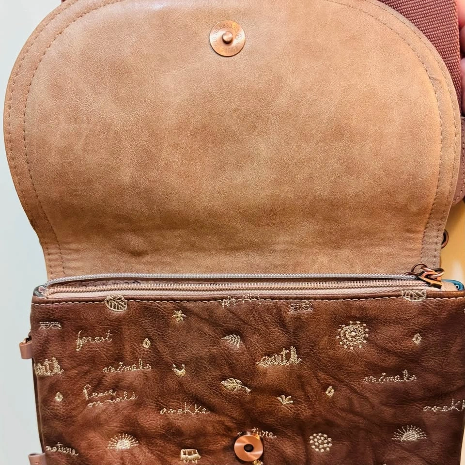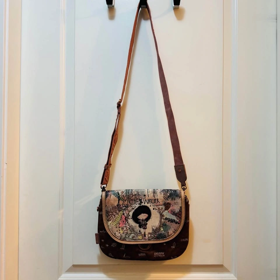 Step into the wild with this stunning Anekke "The Watcher" Crossbody Bag from the sought-after Jungle Collection. 🌿 Known for its intricate storytelling and artistic details, this bag features the iconic Anekke character in a lush, embroidered jungle setting. The back and interior are just as beautiful, featuring themed prints and the "Harmony with Nature" signature.
