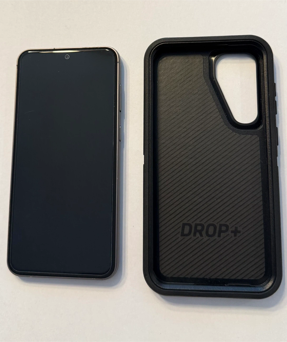 This is a Samsung Galaxy S23 FE smartphone. It's a charcoal grey colour. Comes with a black Otterbox DROP+ case. It was a final sale when I bought it and ended up not needing it so the phone is new.