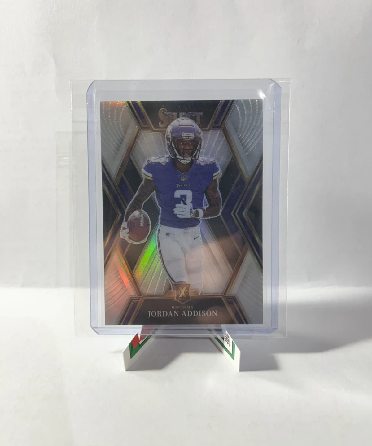 This is a 2022 Panini Select Football card featuring Jordan Addison. The card is numbered 513 and is a Prizm insert redemption card. It's a great addition for any Vikings or Jordan Addison fan!