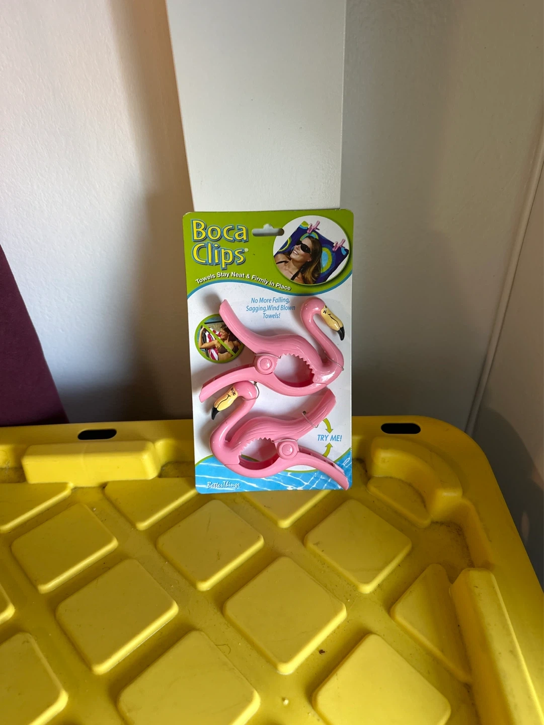These Boca Clips are designed to keep your towels neat and firmly in place. They're great for preventing towels from falling, sagging, or blowing away. Each clip features a fun flamingo design.