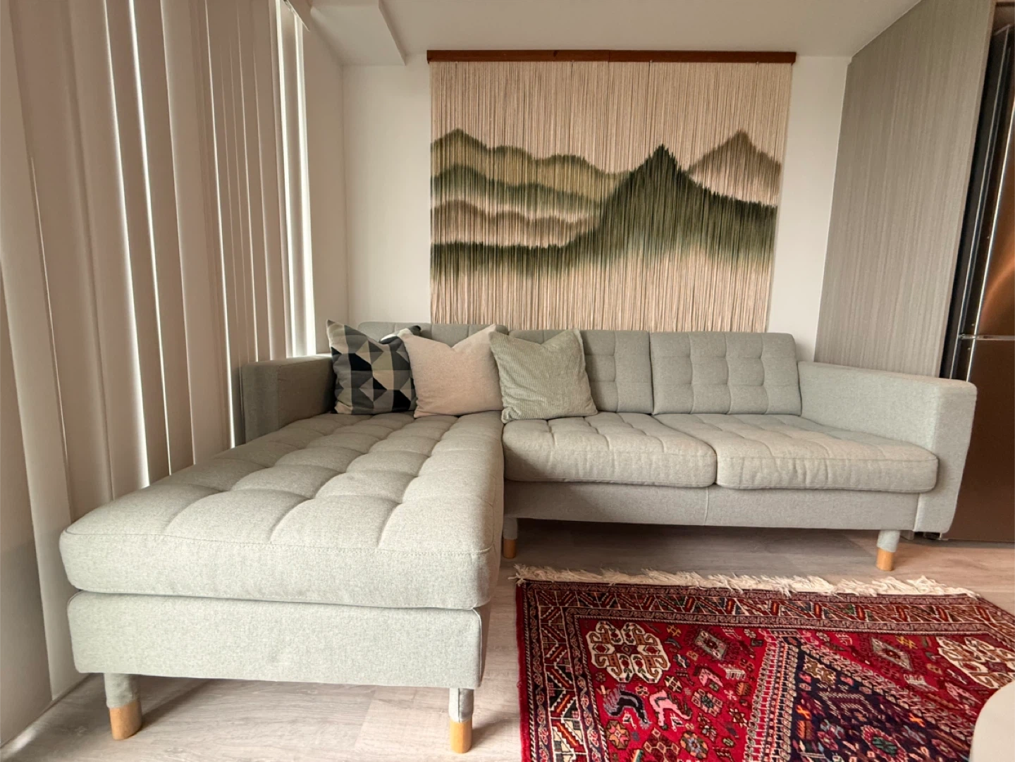 Selling because of move out. You will get the cushions for free with the sofa purchase. It’s sparkling clean, new, and comfy. The L part can be adjusted to left or right side.