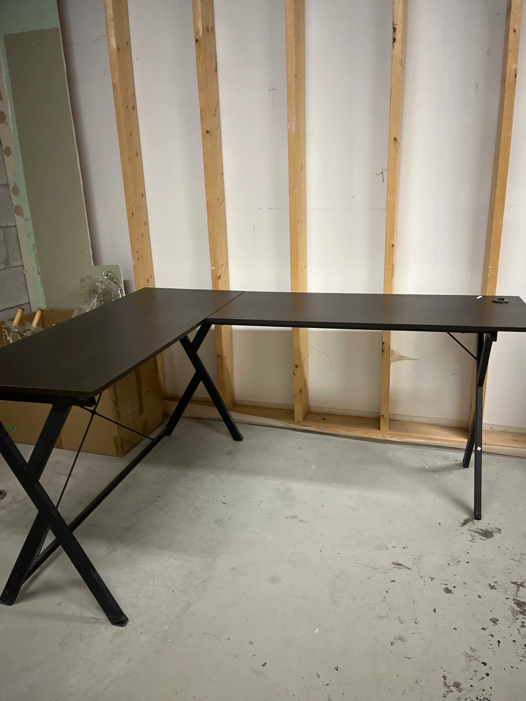 Selling a black L-shaped desk! It's in great condition and perfect for a home office or study space. Its design maximizes corner space, making it a functional addition to any room