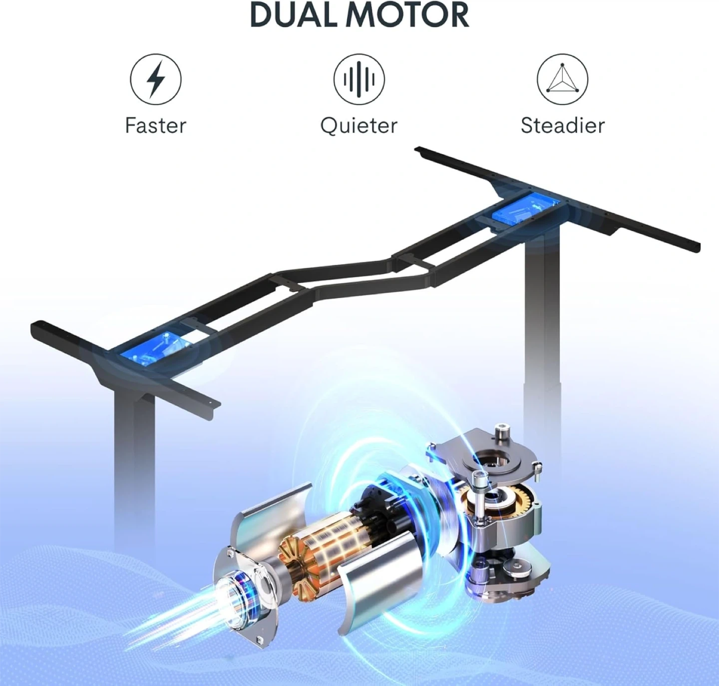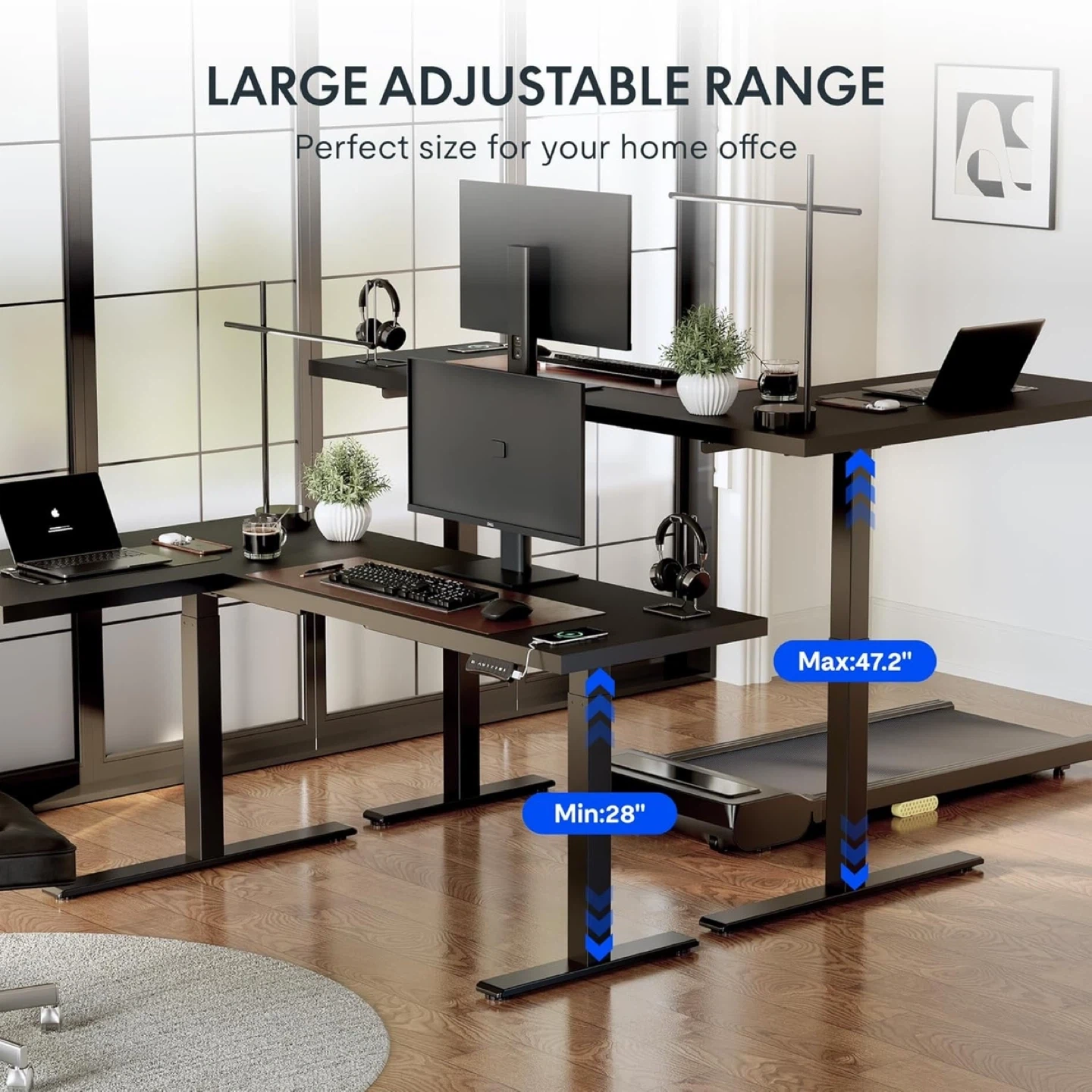 44Looking to upgrade your workspace? I'm selling a FLEXISPOT L-shaped standing desk that's perfect for a home office. It features a dual motor for smooth and quiet height adjustments, making it easy to switch between sitting and standing throughout the day. The desk can be set up for either a right or left-handed configuration, offering flexibility to suit your needs. The height is adjustable from 28" to 47.2". Currently Retailing at $600/- + tax P.S. FREE ERGONOMIC OFFICE CHAIR (BLACK) + ANTI - FATIGUE MAT… FREE !!