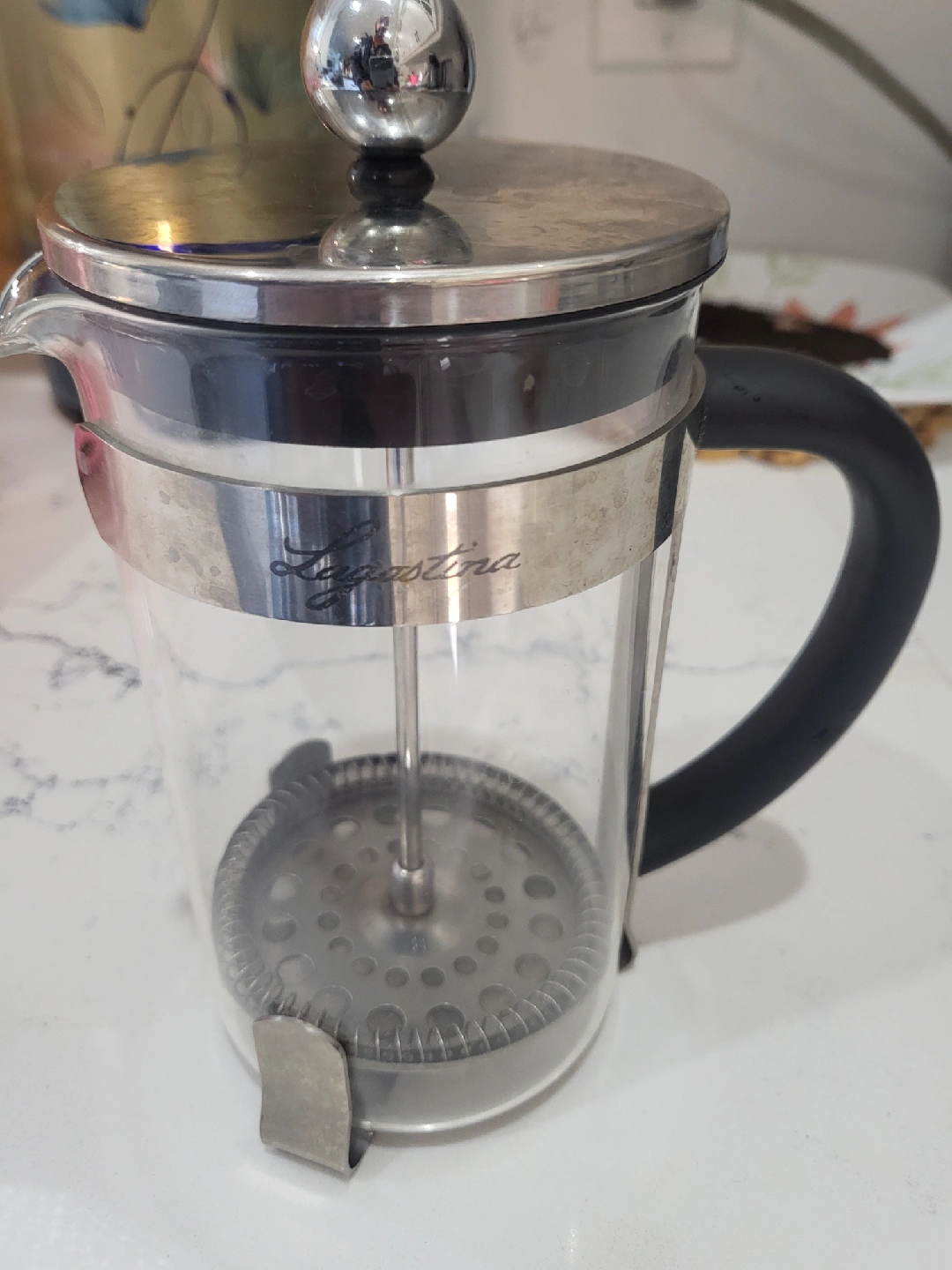 Selling a La Pavoni French press. It's in great shape and ready to brew your favourite coffee or tea. The clear glass design lets you watch the brewing process, and the stainless steel components are durable and easy to clean small chip at the sprout