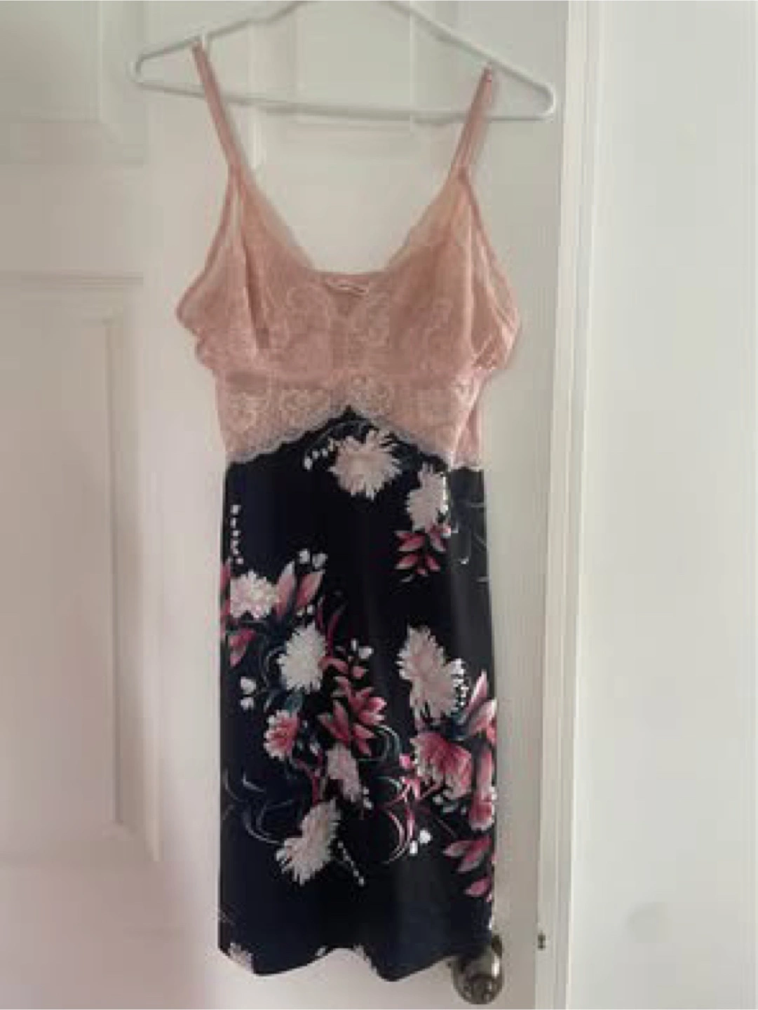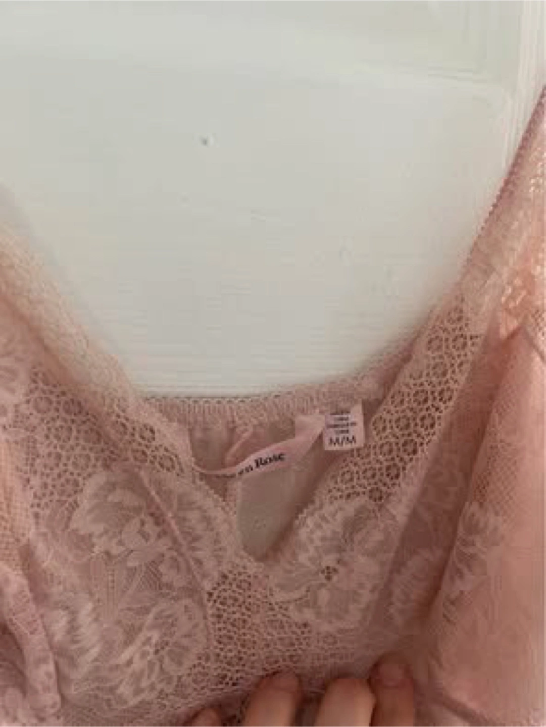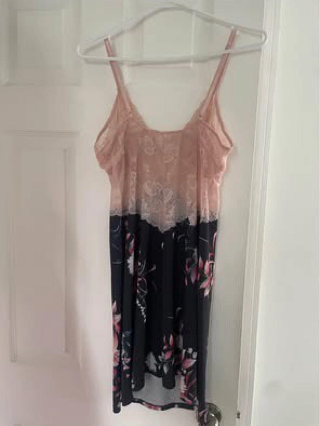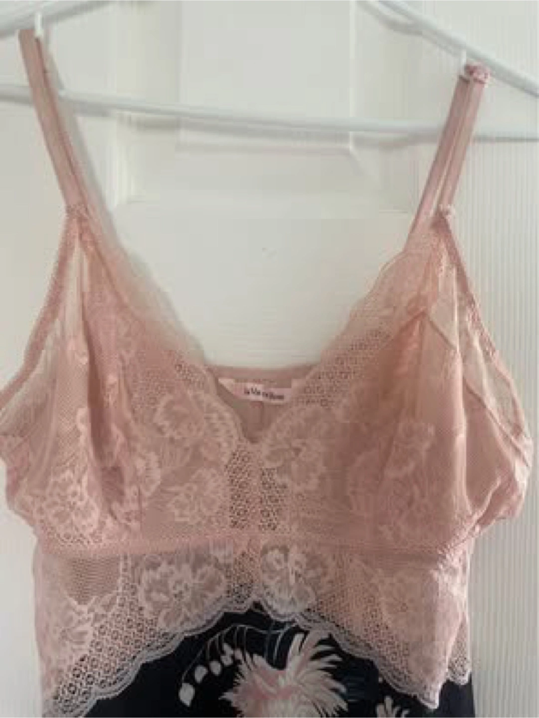 Selling a cute La Vie en Rose cami dress(pajamas)! It features a pretty pink lace top and a floral print on the bottom. The size is M/M.