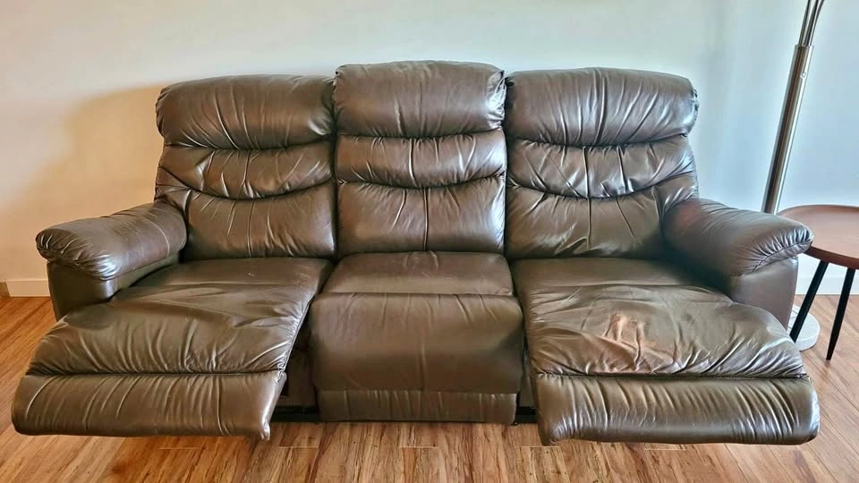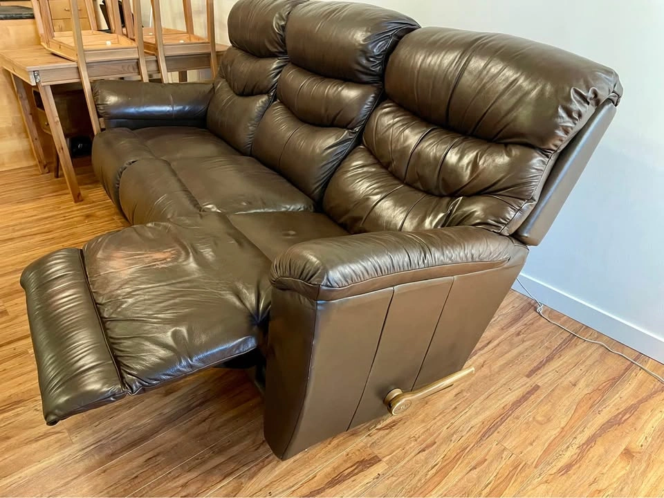39La-Z-Boy leather reclining couch with three seats. The outer seats manually recline. Very heavy and needs two people to lift. However, the sofa can come apart into 3 separate seats for transport. Great condition, some minor discolouration on one seat. Comes from a pet free, smoke free, and fragrance free home. I have several disabilities and am clearing out a family member’s condo, and so have limited days for pickup. Your patience and understanding are greatly appreciated! Next pickup time: - Sunday, Nov 16 late afternoon / early evening (exact time TBD) Located near Lougheed station in Burnaby. Check out my other listings for more furniture and household items! All must go by Nov 30.