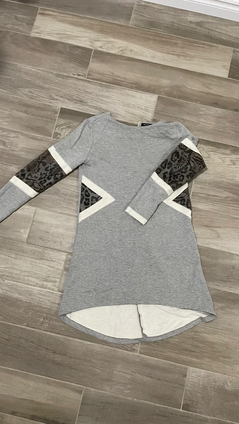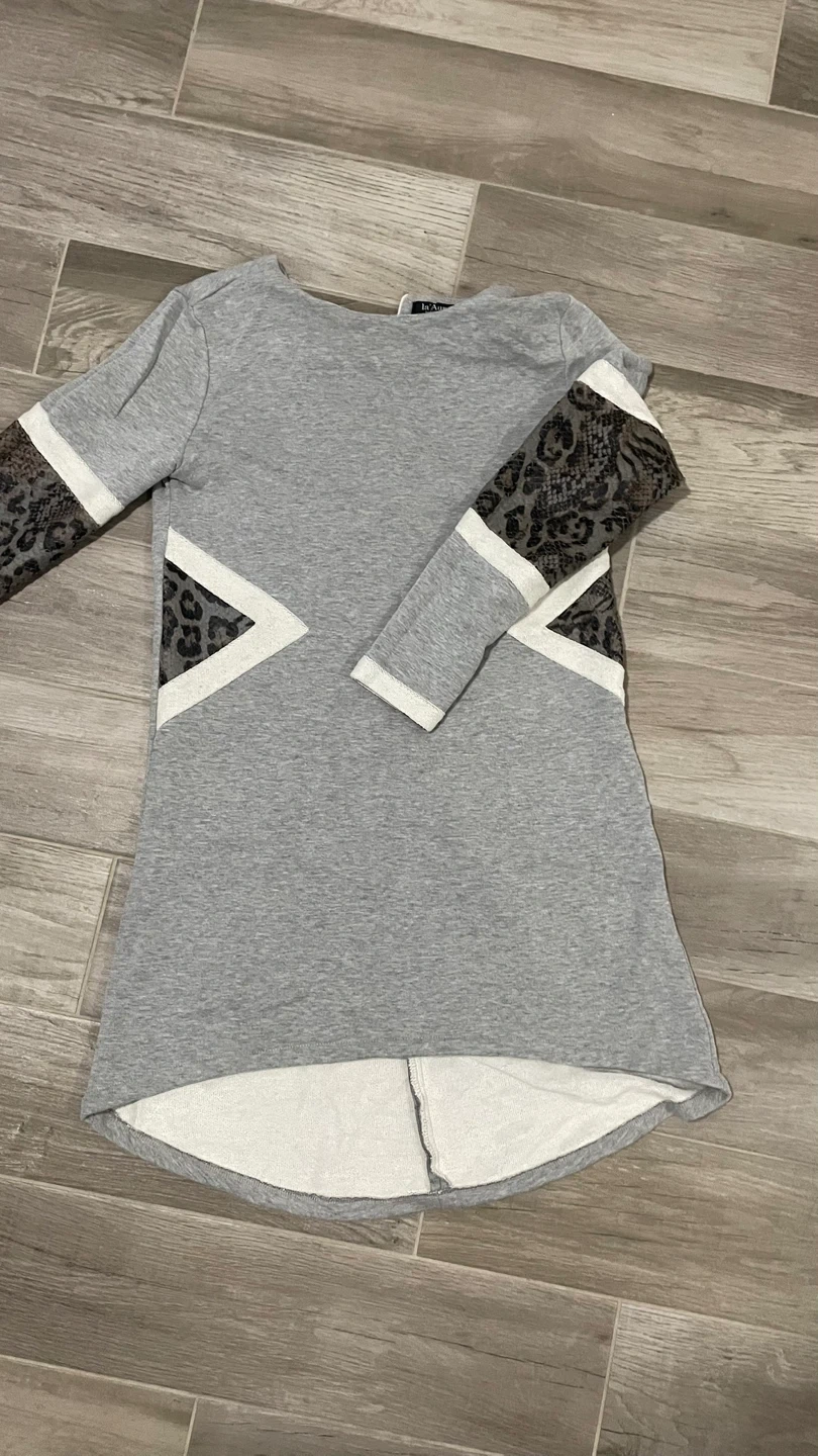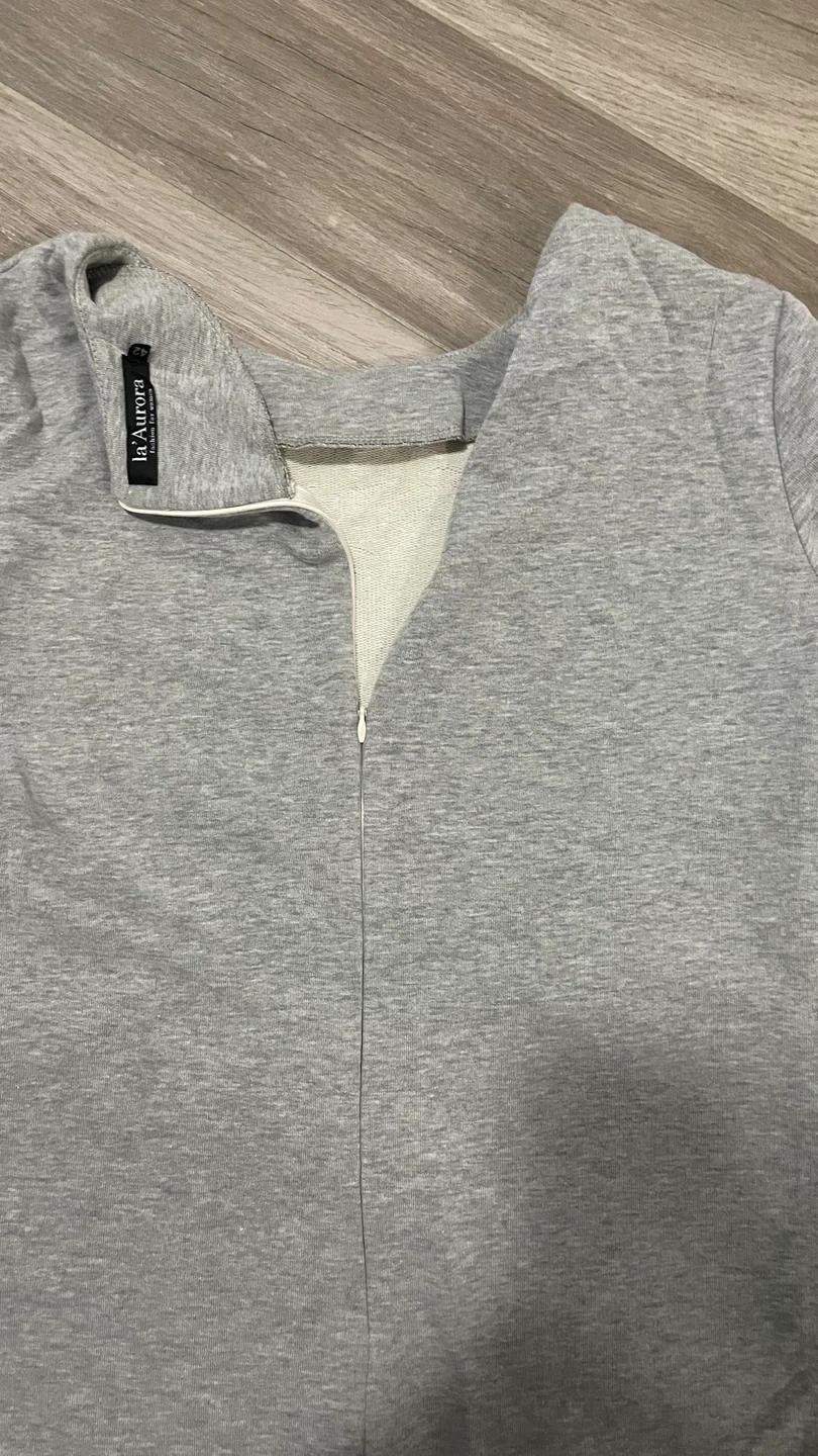 20Cute la'Aurora dress in a size 42 European It's a stylish grey colour with a unique design on the sleeves. Perfect for casual wear or dressing up!