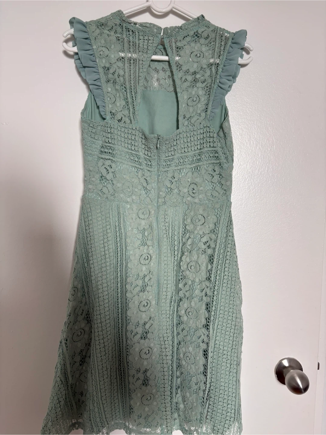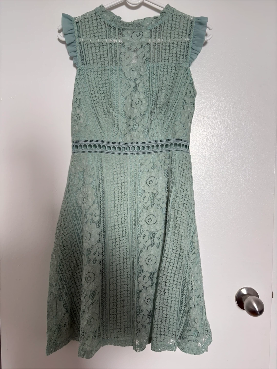 68Selling a beautiful lace dress in a lovely green colour! It's a size small and features a delicate lace pattern throughout. Perfect for a special occasion or a night out. In great condition and ready for a new home!