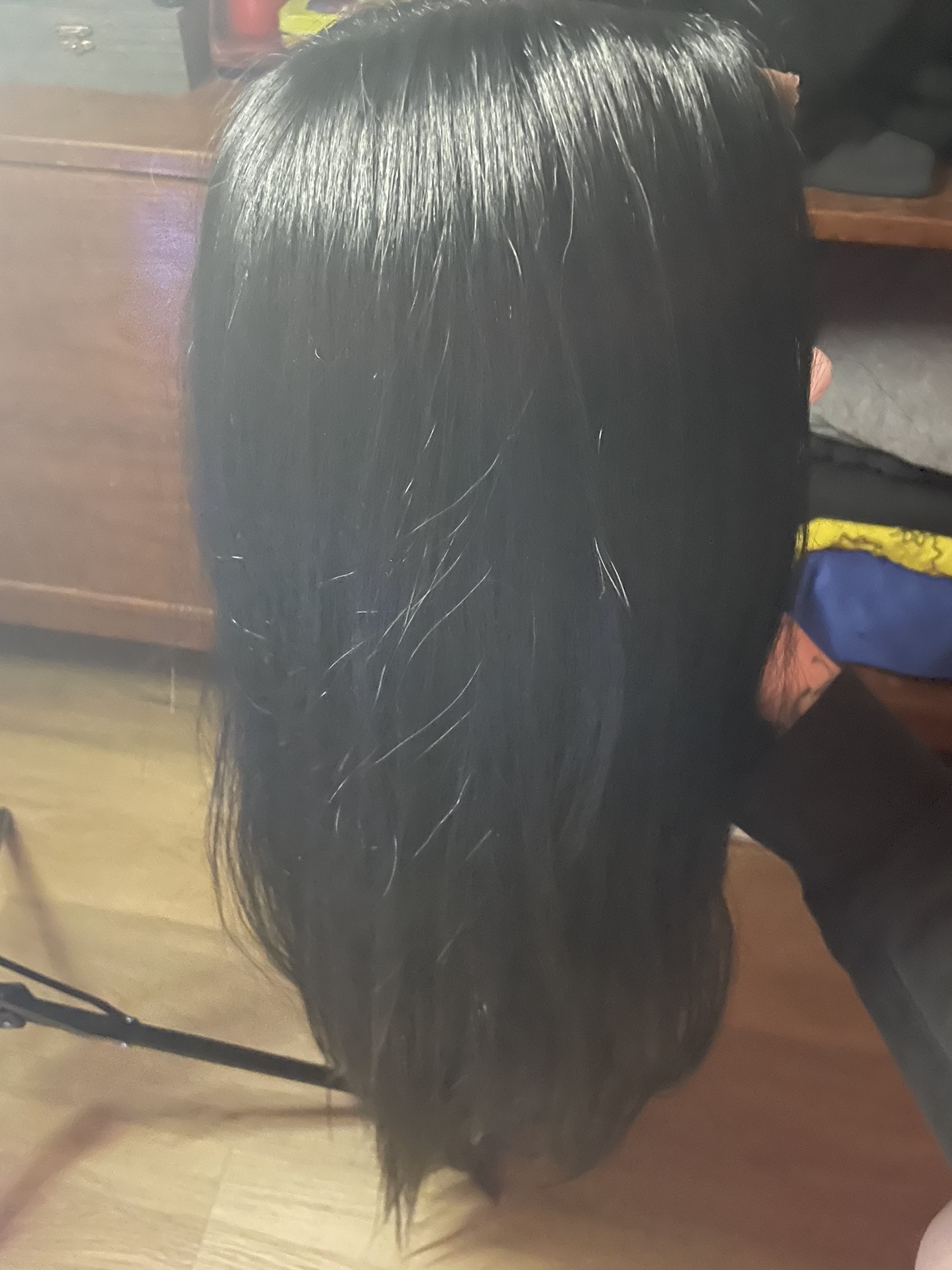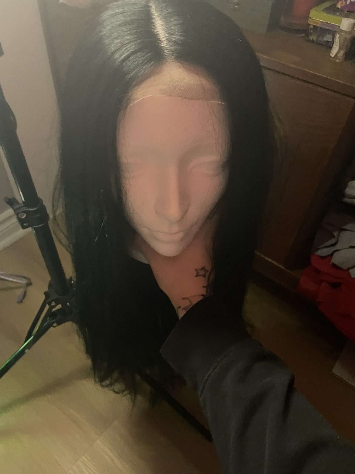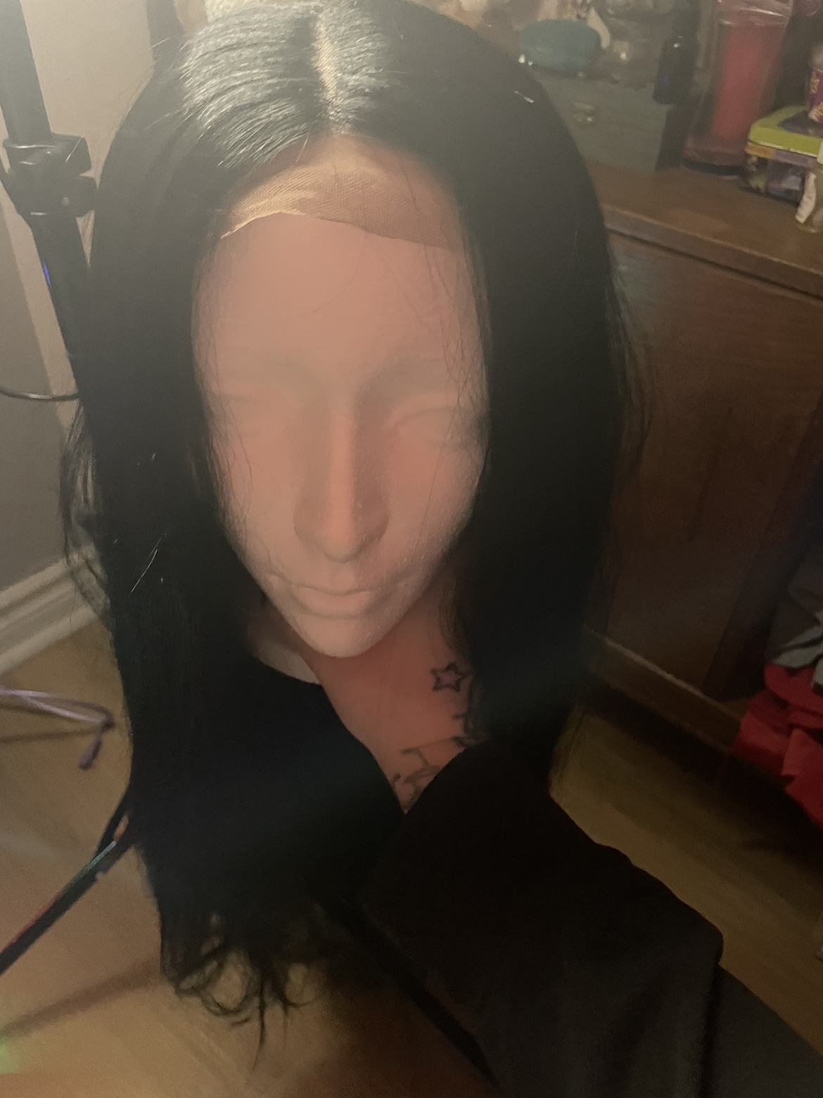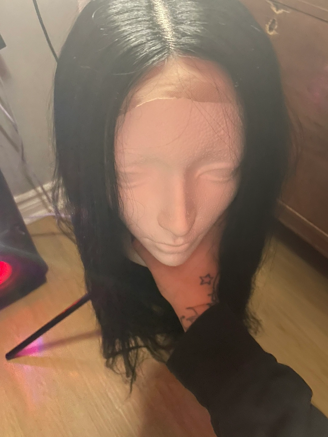 87Brand new never installed, bought from pulse at $75.00 lace has not been touched and wig is in great shape and smells like the store still. Wig is platinum black and 27”