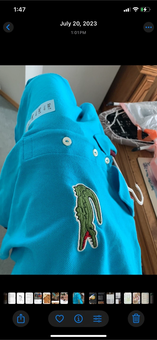 19Selling a Lacoste polo shirt in size 7, which is a Large. The shirt is a vibrant turquoise colour and features the classic Lacoste crocodile logo. It's in great shape and ready for a new home!