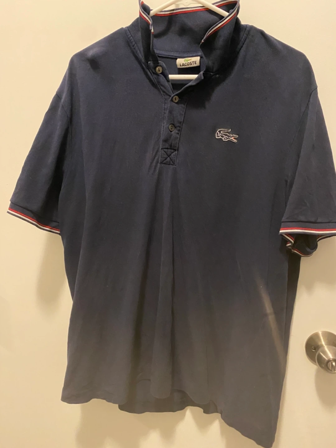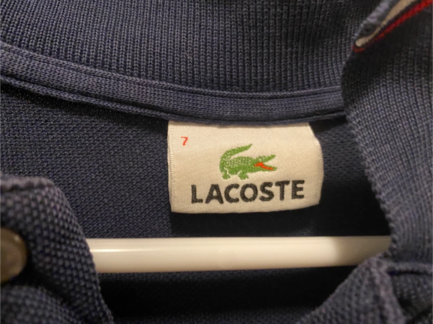 393Selling a Lacoste polo shirt in a dark blue colour. It's in great condition and is a size 7. Perfect for a casual look!
