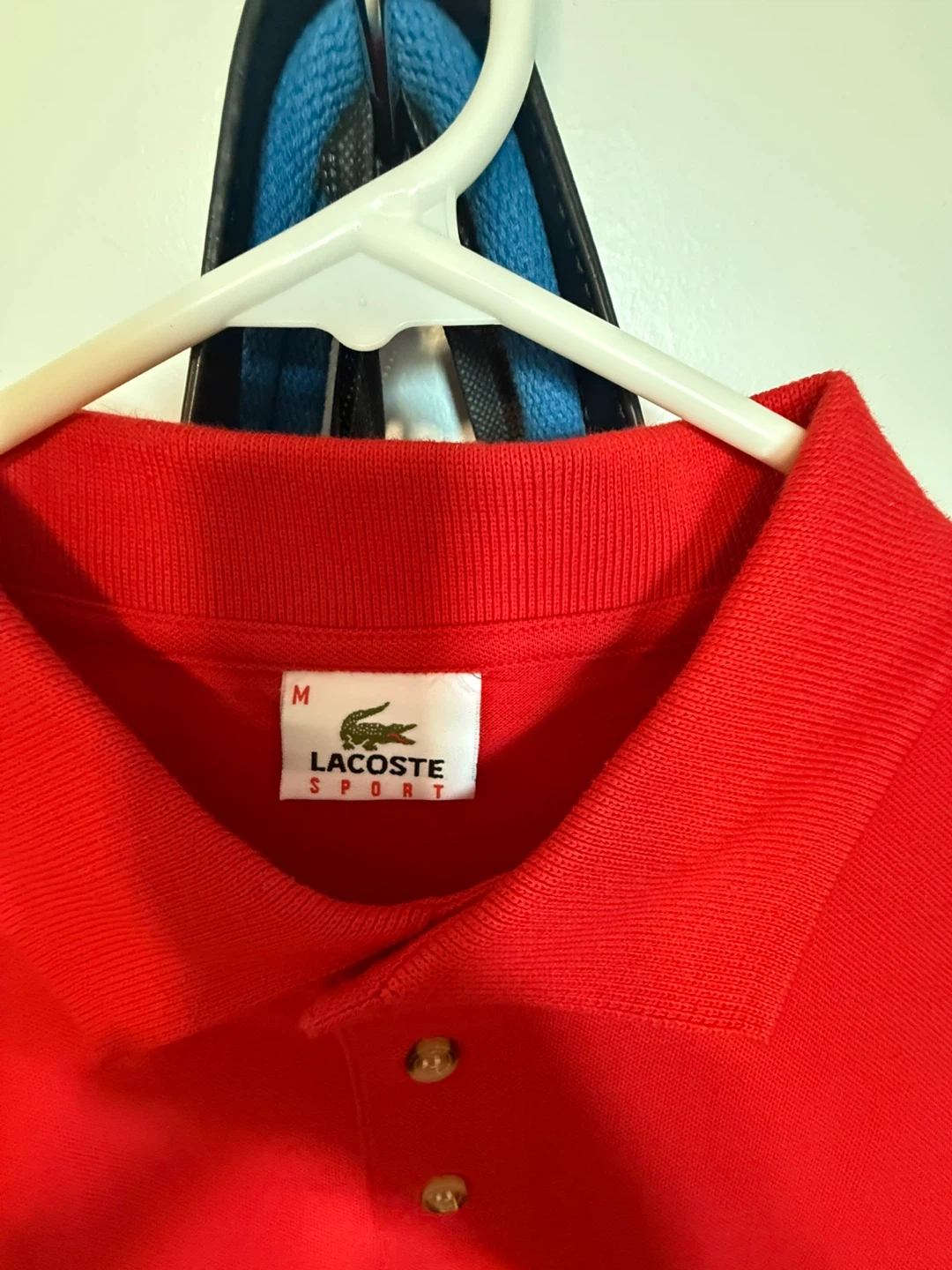 73Lacoste Sport polo shirt in a vibrant red colour. It's a size M and in great condition. Perfect for casual wear!