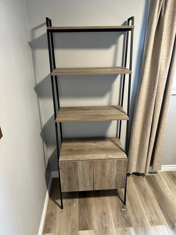 60This lovely shelving unit has treated me well and is extremely versatile — Display your plants, books, chachkis and more! Great for vinyl storage underneath (see photo). I’ve also used it to hide a printer in the bottom cupboard (I did drill a small hole in the back for the cord to go through). I no longer have room for this shelf and hoping it can go to a loving new home. Pick up only in Barrie. Bring a friend to carry it with you :) Dimensions: 6ft (72”) tall, 28” wide, 16.5” deep
