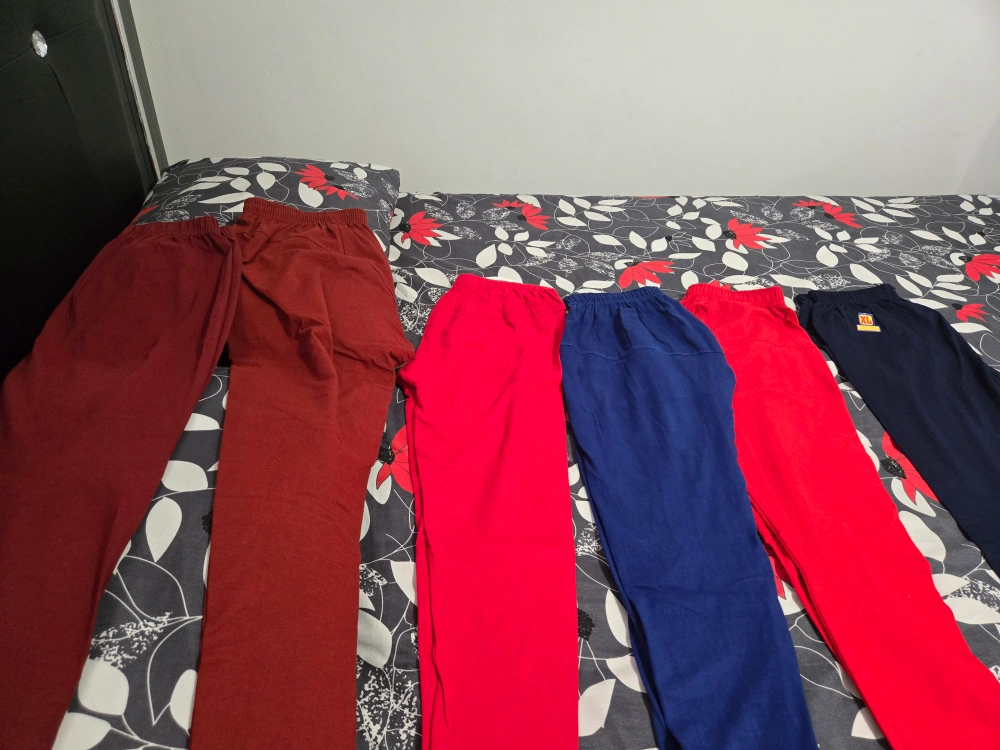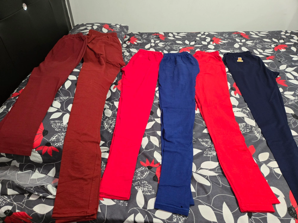 Selling a set of ladies leggings in assorted colours! There are red, burgundy, blue, and navy pairs. They're in great condition some new some used once. $5 each. Only cash accepted.