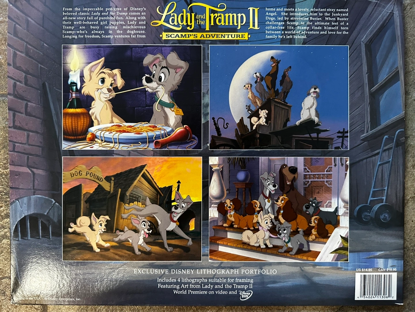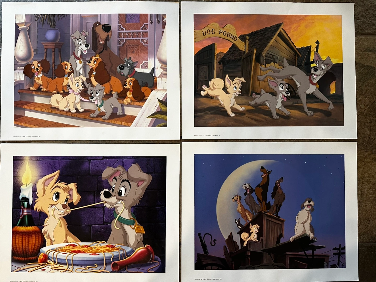 26Set of 4 Lady and the Tramp II Lithograph Prints. All posters are in good condition and are approximately 11” x 14” suitable for framing Includes original storage folder Non Smoking Home