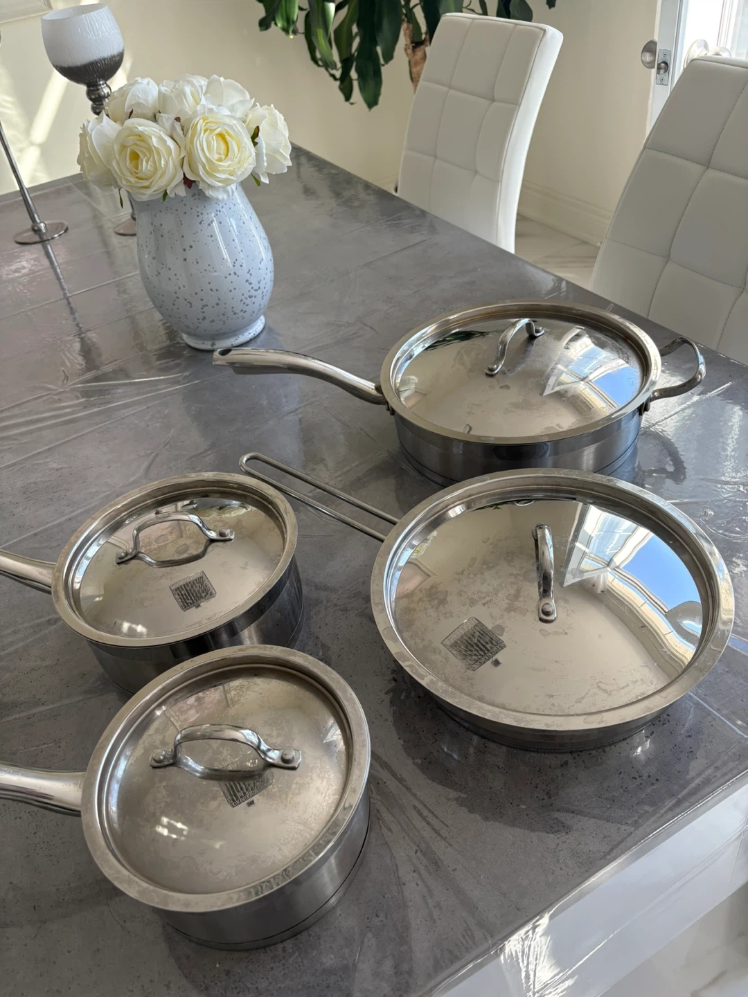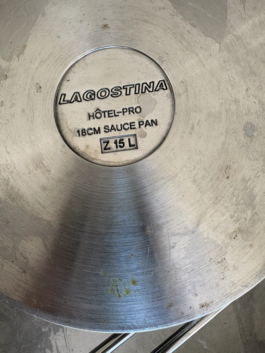 Selling a set of stainless steel cookware, including Lagostina and Korkmaz pans. - Lagostina Hôtel-Pro 18cm Sauce Pan - Korkmaz 24cm pan, made in Turkey Great for any kitchen!