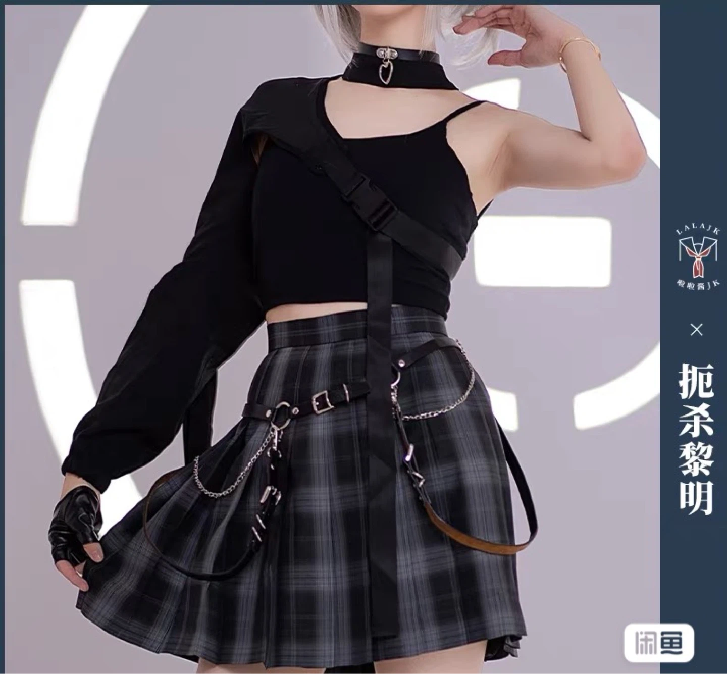 1000+Selling a stylish LALAIJK plaid skirt, perfect for adding a unique touch to your wardrobe! The skirt features a cool plaid pattern and comes with eye-catching straps and chain details. It's in great condition and ready for a new home! Xxl chinese size Waist 77-82 cm