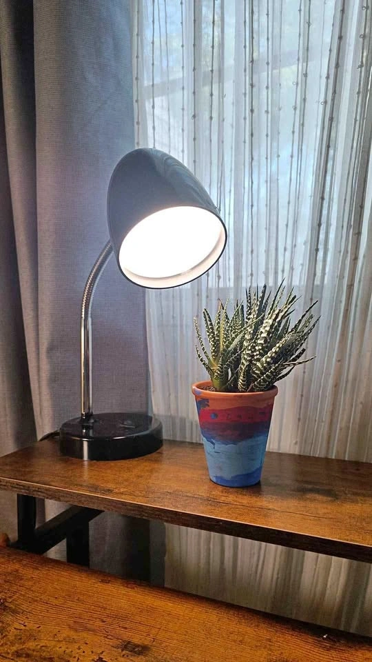 Little black lamp for desk with neutral light.