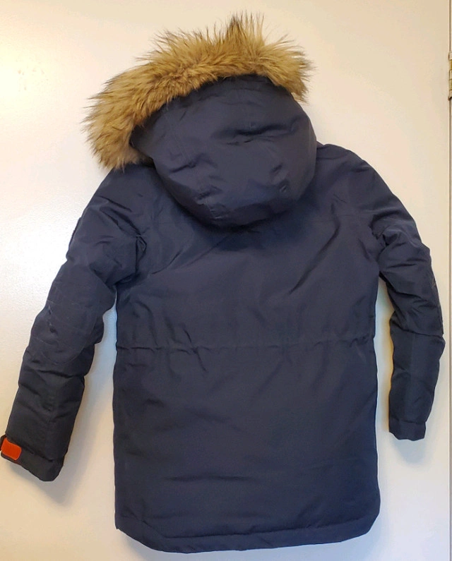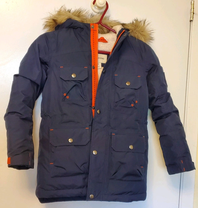 Navy blue. Excellent condition & quality. Both in great condition. Kids Expedition Down Winter Parka. TEMPERATURE RATING – WARMEST: -18° to +17° Fahrenheit. Parka length hits below the hip. Waterproof shell. Insulated with 600-fill power down, nature’s warmest. Lands’ End uses Responsible Down Standard (RDS) down procured through an ethically sourced supply chain. Anti-pill fleece-lined hood and upper body. Quilted lower body and sleeve lining. Insulated hood with removable faux fur ruff and rip-&-grip back strap. Full-zip and snap closure front with chin guard. Rip-&-grip closure chest handwarmer pockets. Inside mesh pocket with elastic binding. Top- and side-entry snap closure front pockets. Bungee cord-lock adjustable waist. Adjustable cuffs with rip-&-grip closure. Grow-A-Long™ sleeves extend up to 1.5 inches to fit them as they grow. SnowGuard™ wrist cuffs: an interior sleeve extension lets them slip their thumb through the cuff, keeping out cold and snow. Elbow patches. Shell/upper body lining/hood insulation: 100% polyester. Lower body and sleeve lining: 100% nylon. Body and sleeve insulation: 80% down/20% feathers. Faux fur trim (remove and wash separately): 86% acrylic/14%polyester. Machine wash. Imported. Warmest parka. Ever. Kids’ Expedition authentic down parka may be insulated with feathers, but it’s definitely the warmest and most feature-packed winter protection. Seriously, it can be worn in -18°F weather. You won’t find a kids’ parka like this anywhere else. Kids Squall Waterproof Iron Knee Bib Snow Pants. Waterproof, windproof shell. 100-gram insulation. Adjustable shoulder straps with clip-in buckles Zip-front. Elastic armholes and waist. Rip-&-grip hip pockets. Reinforced with Iron Knees and Seat: soft interior fabric patches that help prevent holey knees and seats so they can wear again and again! Grow-A-Long™ legs extend up to 2 inches to fit them as they grow. Zip ankles fit over or into boots; elasticsnow gaiters inside block out cold and snow. Shell/lining: 100% nylon. Insulation/trim: 100% polyester. Machine wash. Imported. Snow-armor Squall® bibs. Tons of functional features help kids slip these on all by themselves, let them be active without worry, tackle their growth spurts, and most importantly, keep cold snow out and dry warmth in. They’ll be so comfortable and confident in these snow bibs they’ll never want to come back inside - unless cookies and hot cocoa are waiting. Condition: Used - Like new