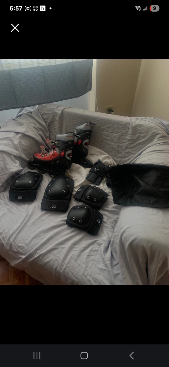 73Selling a set of Landway roller blades. Includes all the pads you need: knee pads, elbow pads, and wrist guards. Great for getting started!