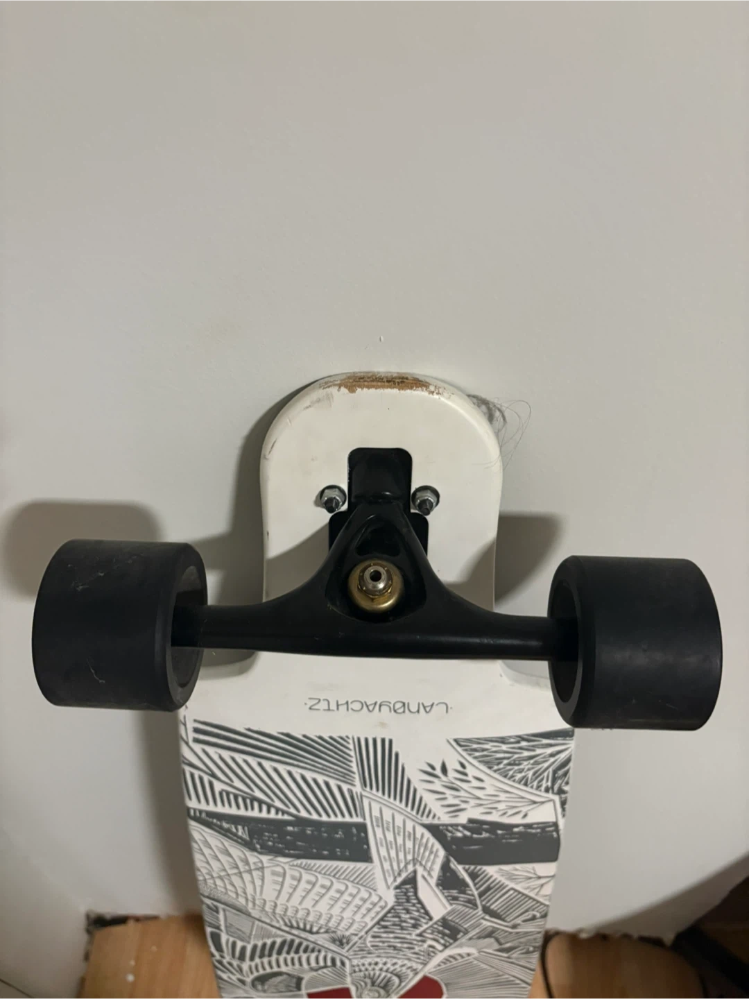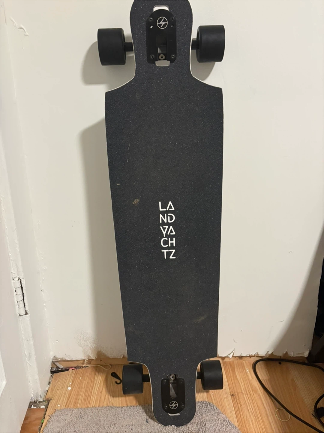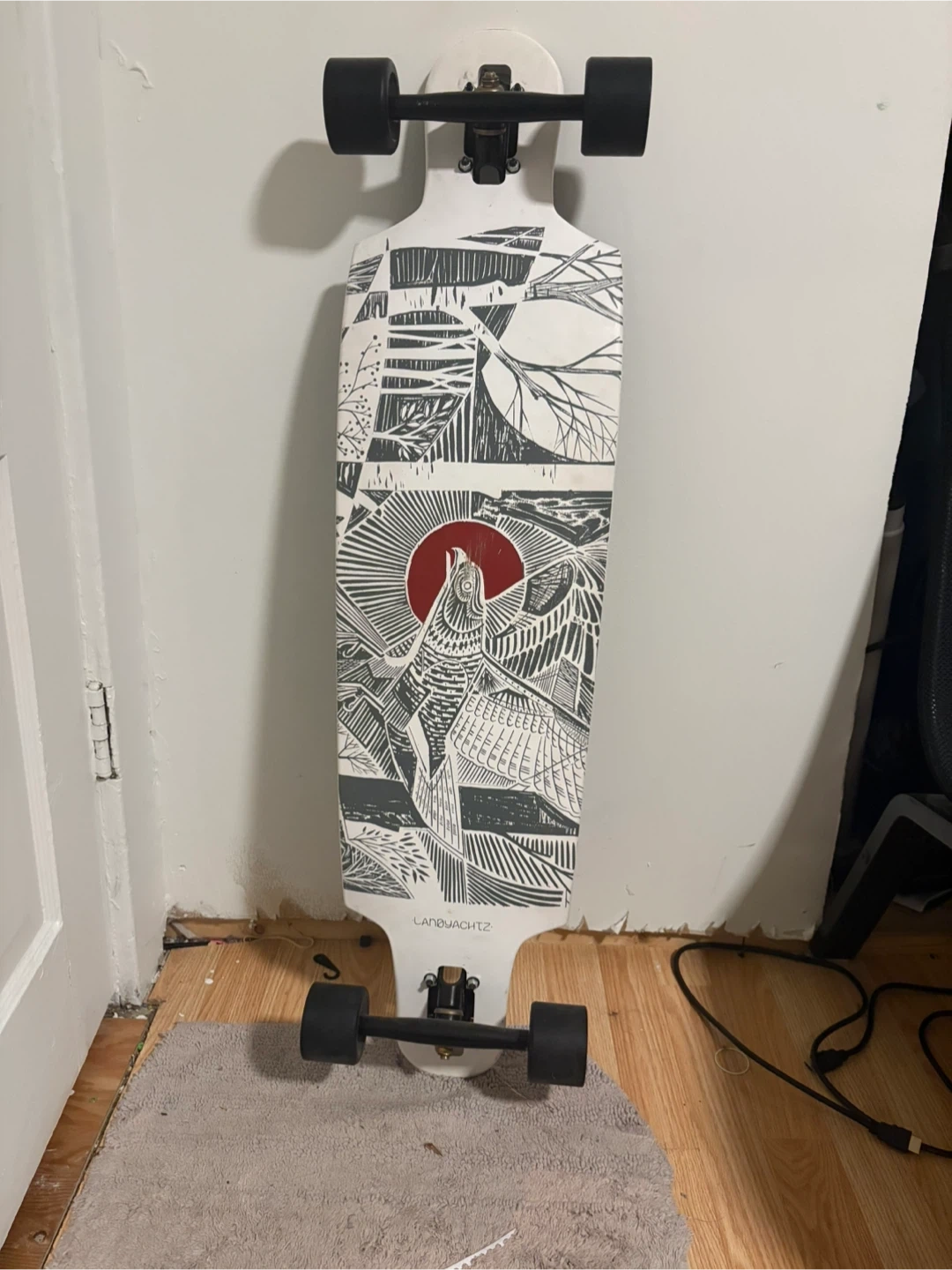 Selling a Landyachtz longboard. It has a cool design on the bottom and is ready to ride! It's in good condition and would be great for cruising around town and it has small scratches on front and back.