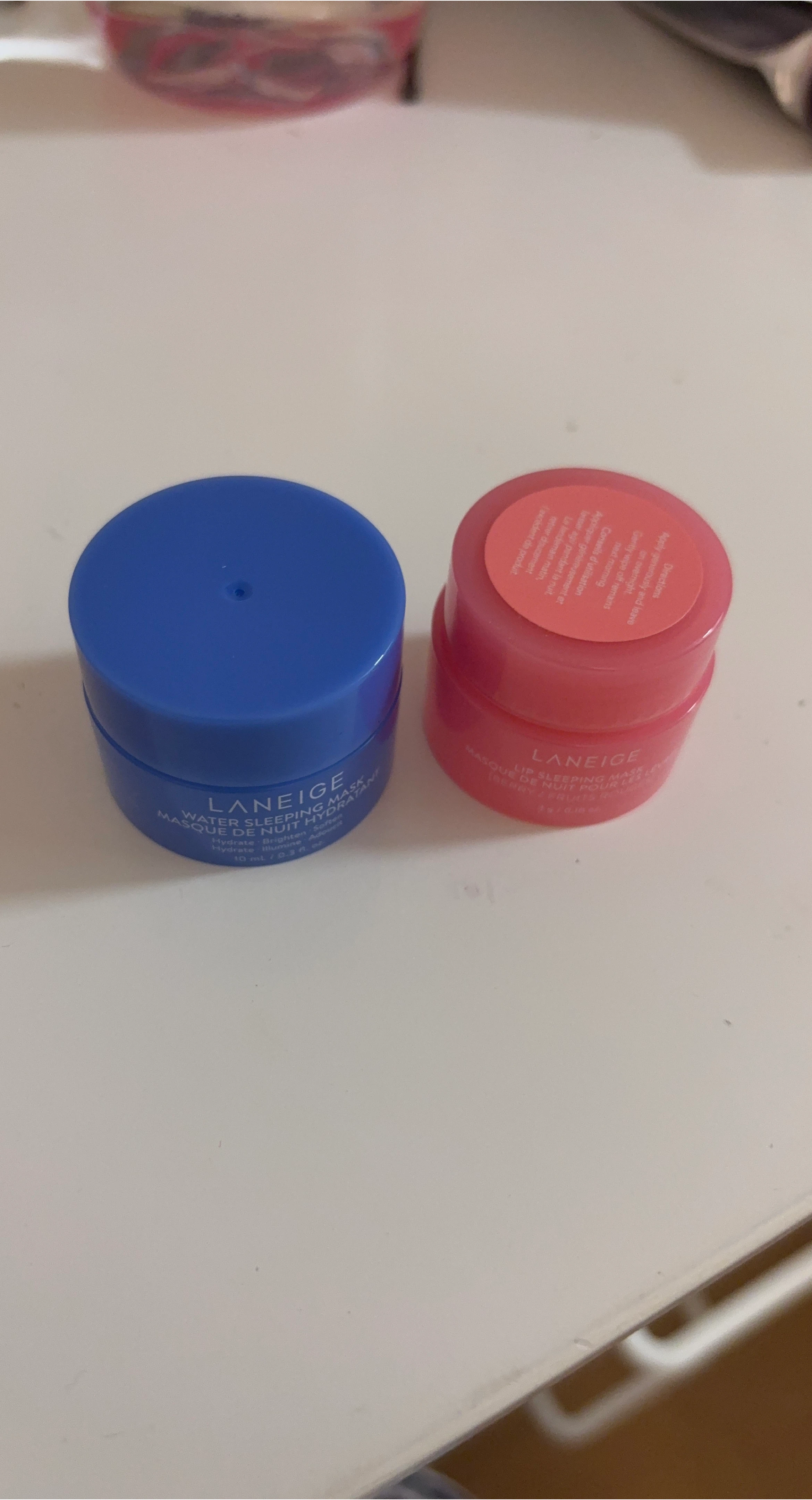 Here are two Laneige sleeping masks! There is the Water Sleeping Mask and the Lip Sleeping Mask. The water sleeping mask is meant to hydrate, brighten, and soften your skin! The lip sleeping mask is berry flavored