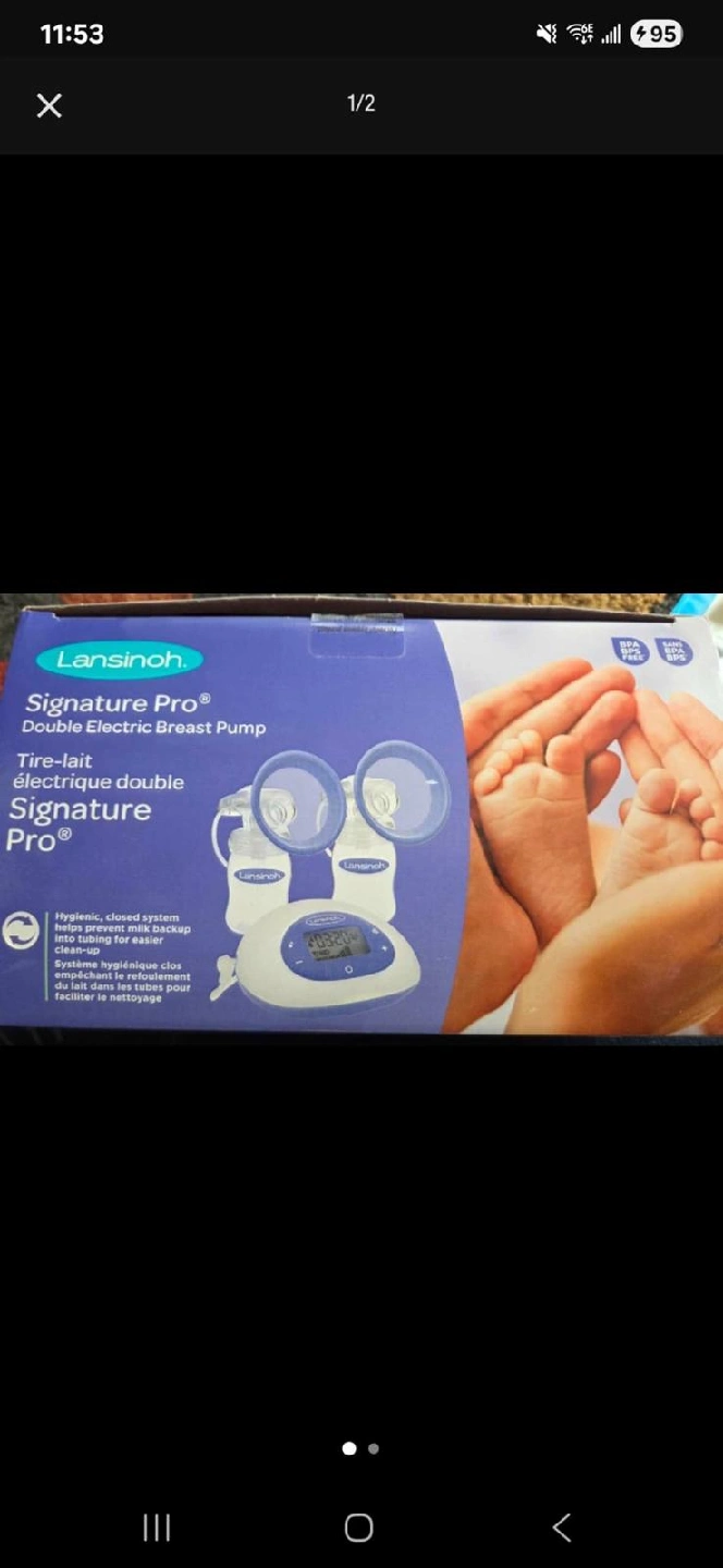 Selling a Lansinoh Signature Pro Double Electric Breast Pump. It has three pumping styles for efficiency and is comfortable and adjustable. It also saves time and is compatible with Lansinoh Breastmilk Storage Bags. It also has comfortable flanges. The box is include used a few times