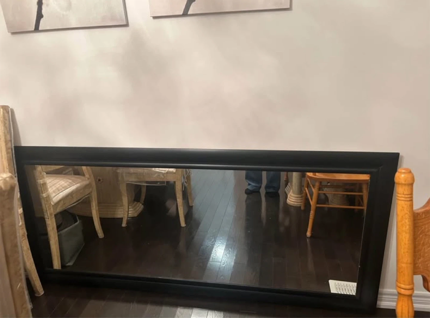 Selling a large mirror with a black frame. It's in great condition and would look great in any room. The size is quite substantial, making it a statement piece for your home decor. It can be used vertically as a full body mirror or hung up horizontal! Pick up in Whitby!