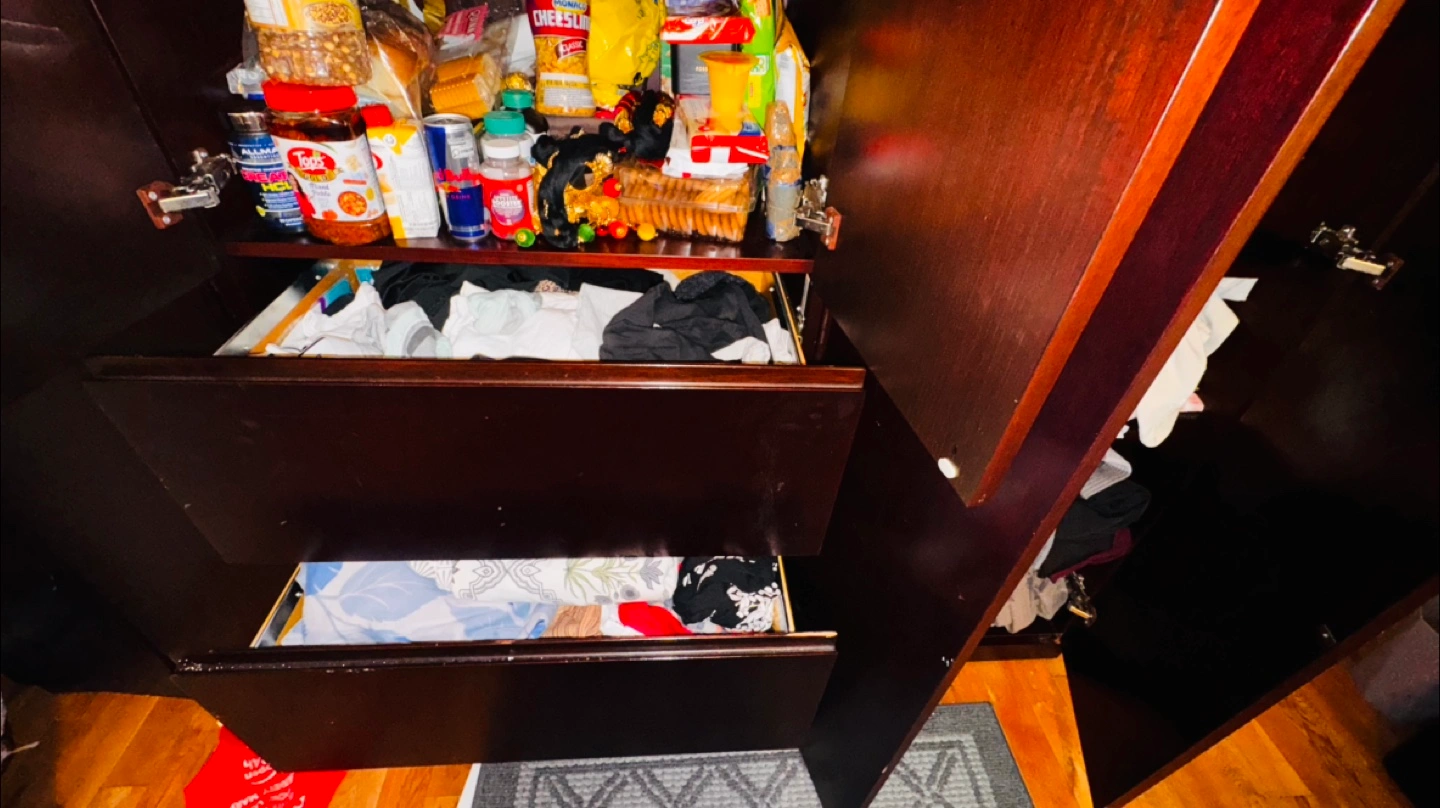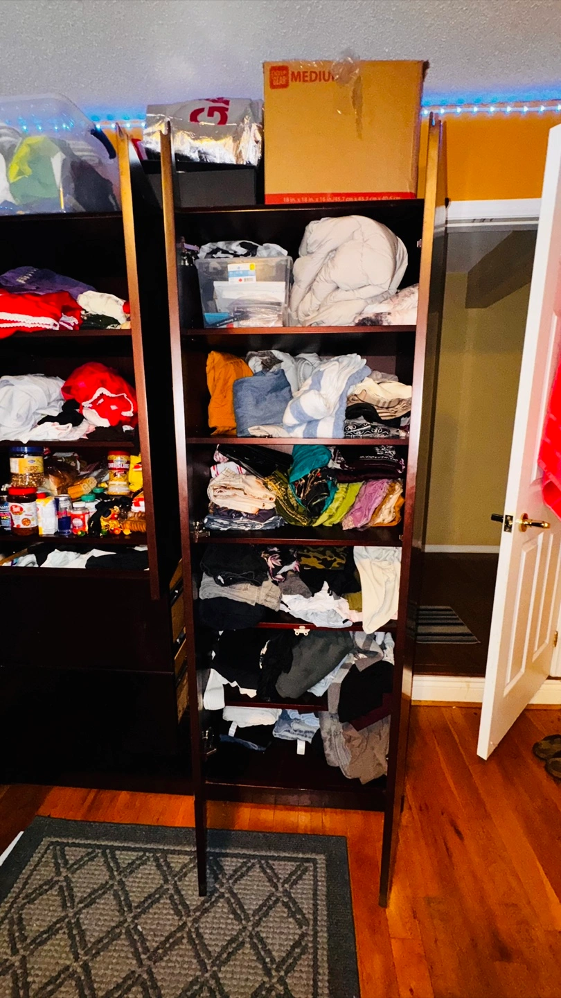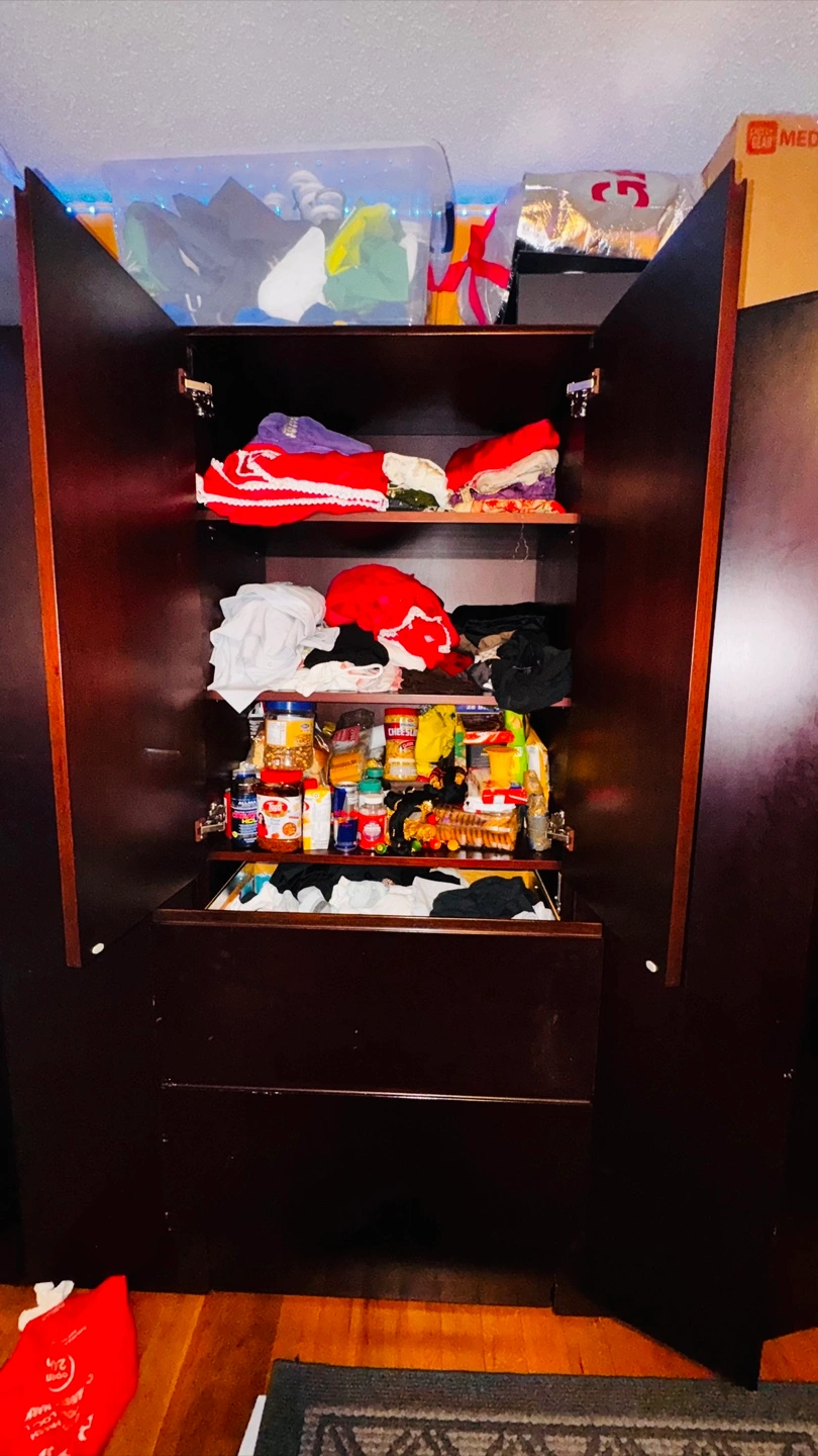 Selling a large wardrobe in a dark brown colour. It has lots of space for storage, including drawers and shelves. It's perfect for organizing clothes and other items!