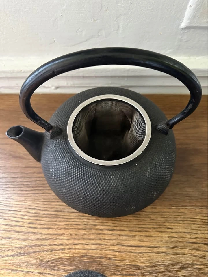 15Large unglazed, unpainted cast iron tea pot with mesh infuser insert, approximately 1L Great condition. Pickup at Mont-Royal metro station.
