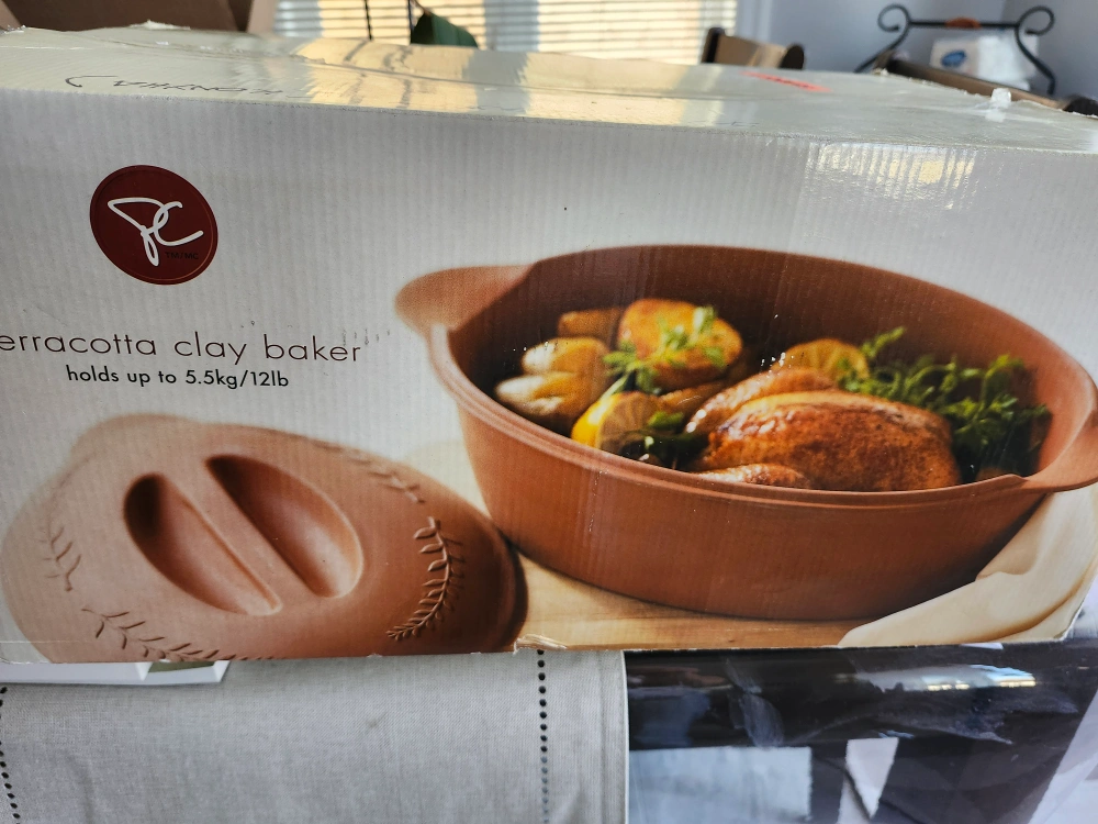 Romertopf Clay Baker, great for cooking chicken or vegetables. The clay material helps to cook food evenly and retain moisture. It's in great condition and ready for a new home!