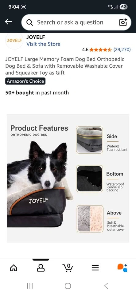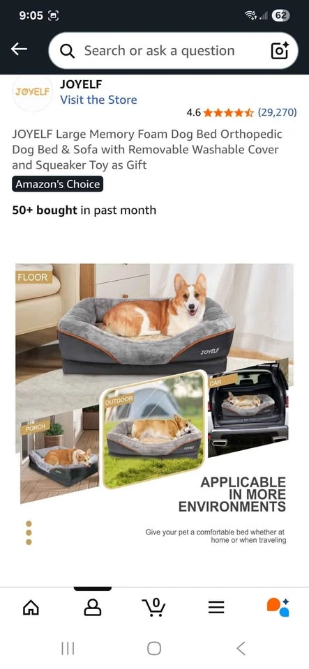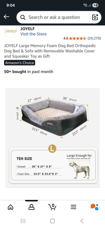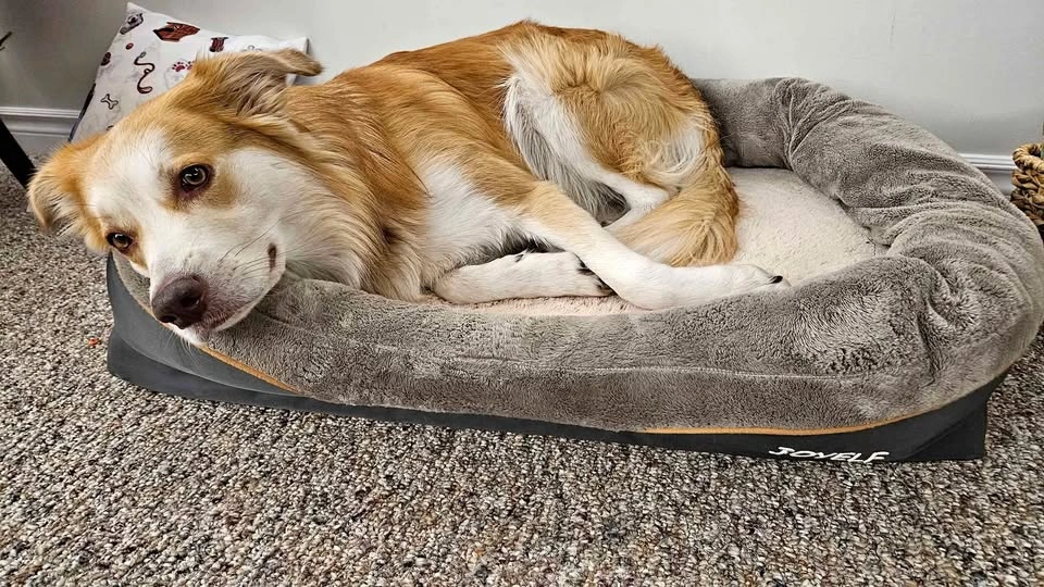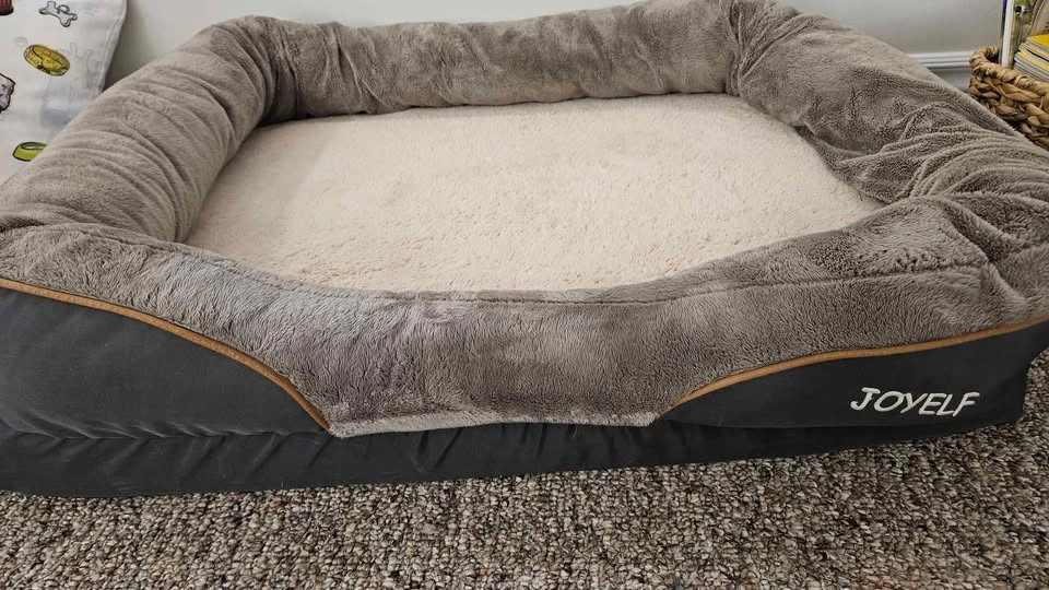 Joyelf Dog Bed in size Large. Good for M-L dogs. Dimensions in images. Hardly used, my dog prefers our couches. His photo in images. He is between M-L in size. Price is firm. Pick up near Lawson Rd + Denlaw Rd, London, ON