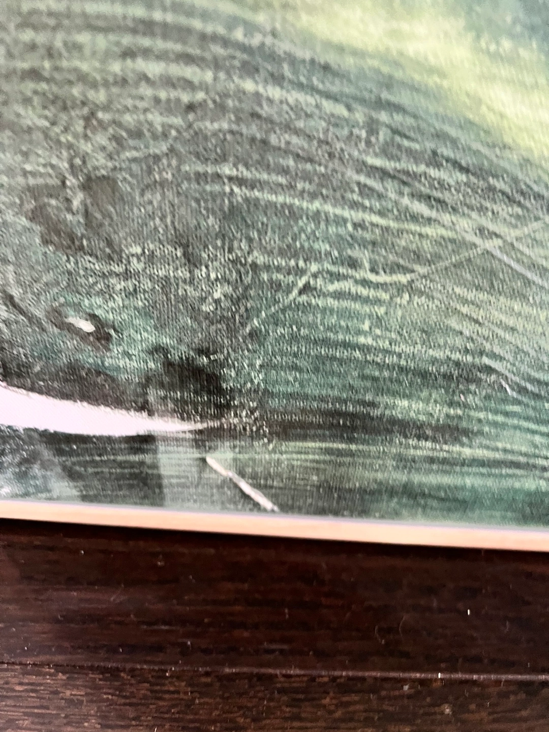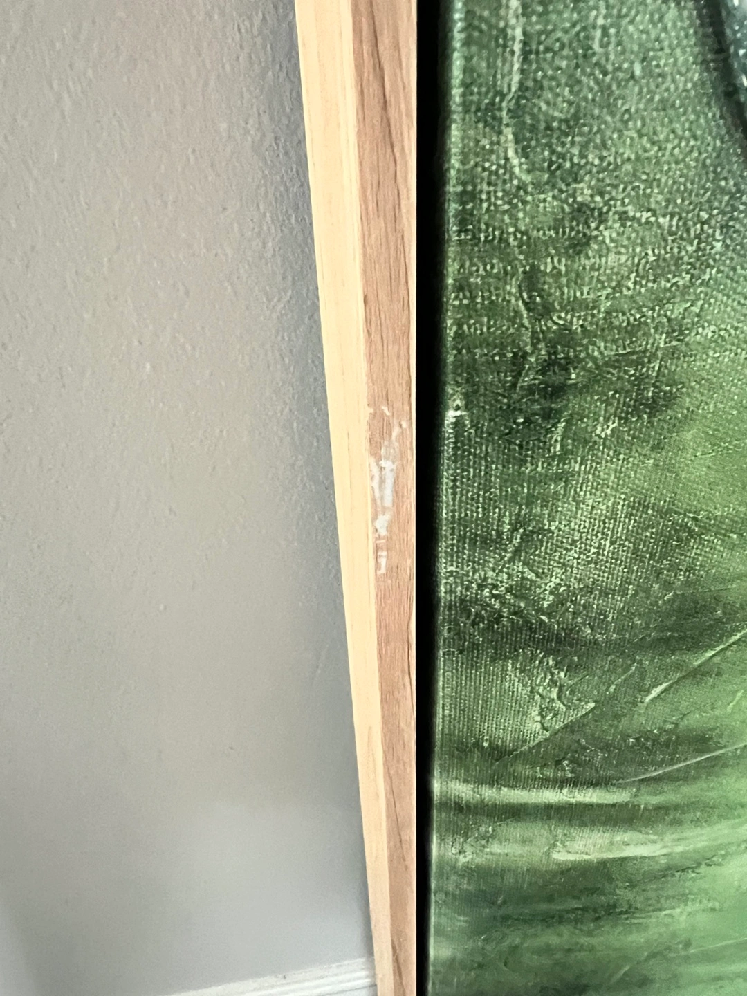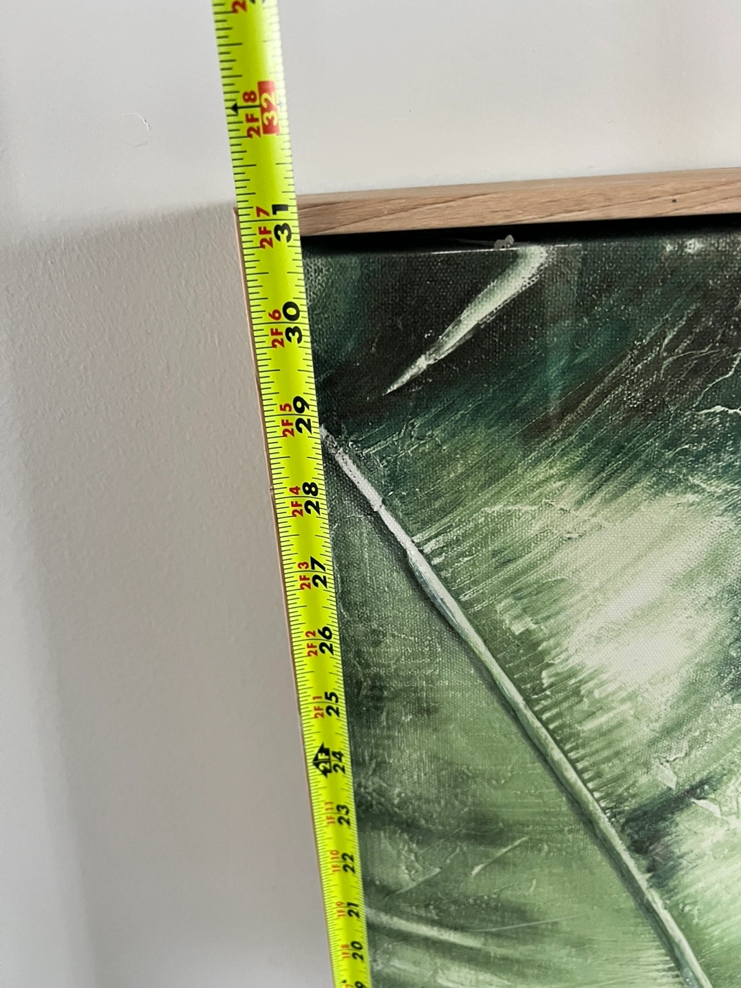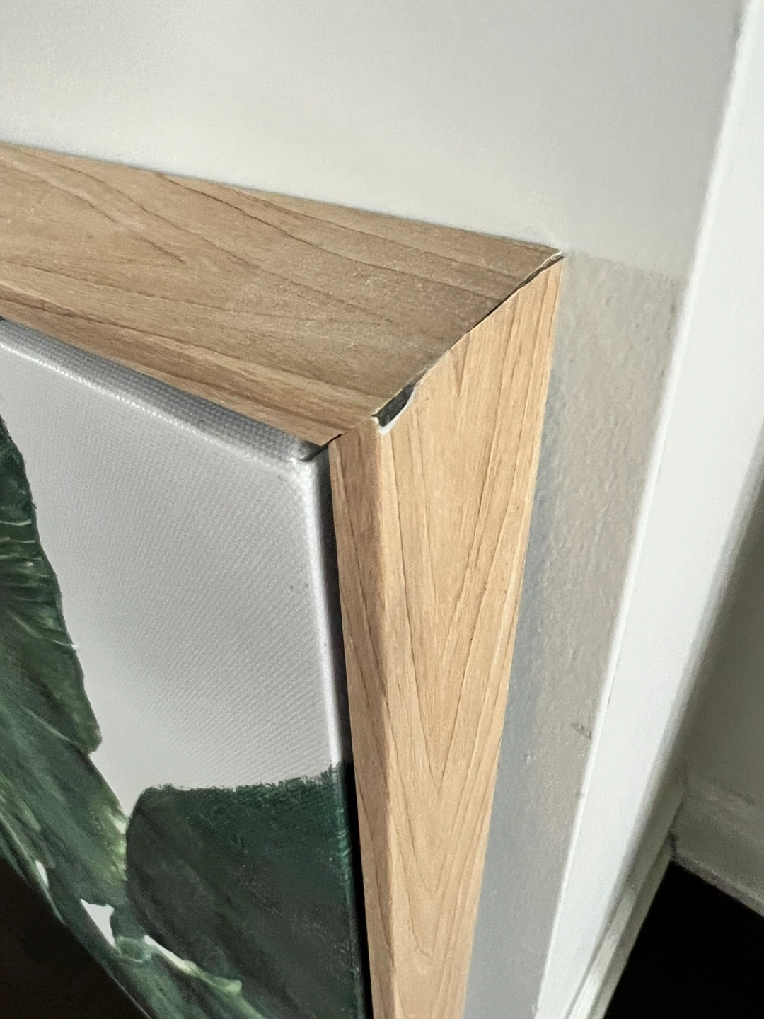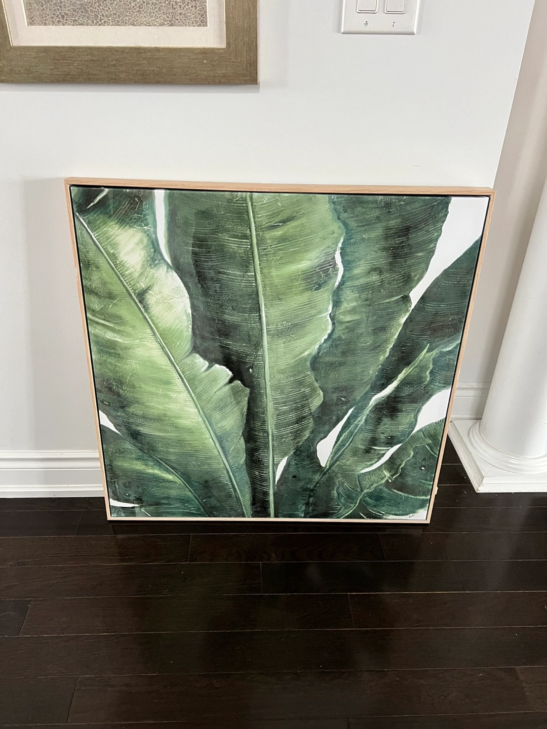 248Stunning large canvas print. Features a vibrant tropical leaf design. Light wood frame. Ready to hang. Minor imperfections.