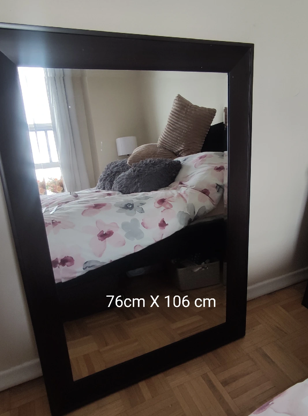Selling a large mirror, perfect for adding a touch of elegance to any room! The mirror measures 76cm x 106cm.