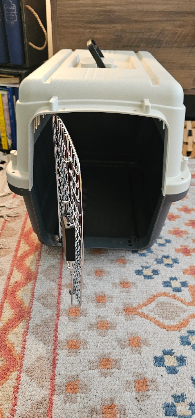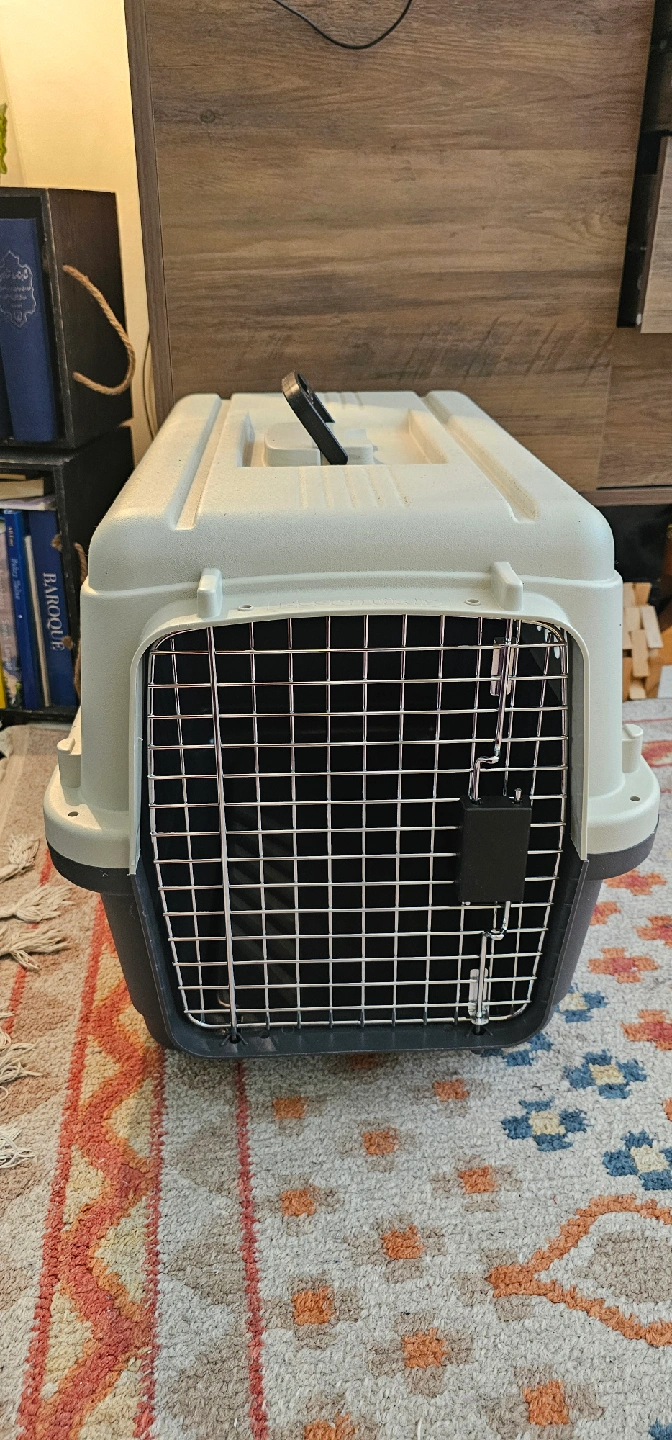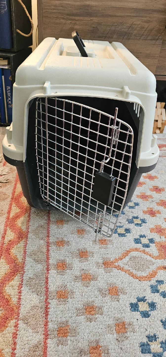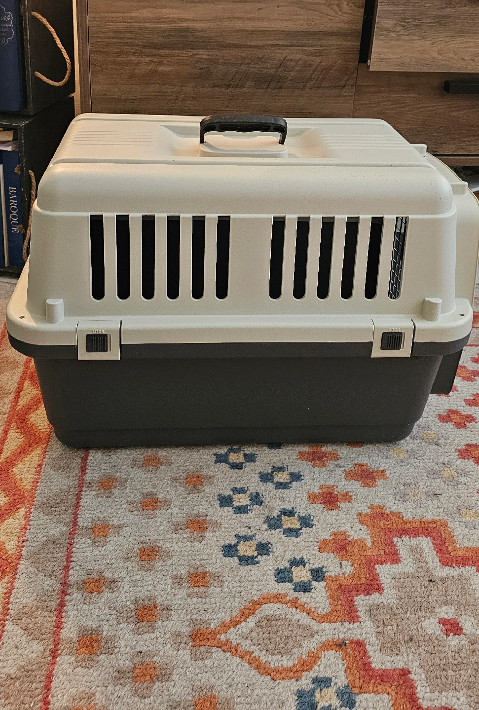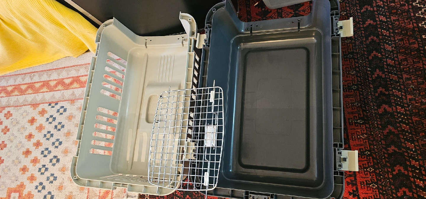 Selling a pet carrier in good condition. It's perfect for taking your furry friend to the vet or on trips. The carrier is sturdy and has a secure latch to keep your pet safe and comfortable