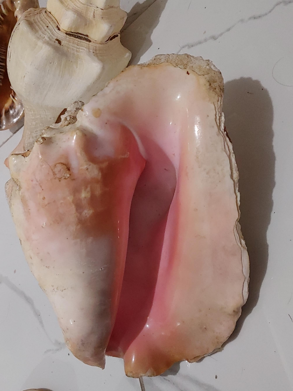 Selling a large pink seashell. It's a beautiful piece that would look great as part of a collection or as home decor