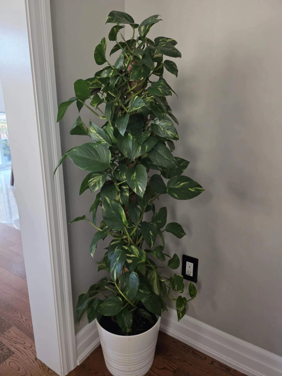 Currently sits at 3.5-4 feet tall. Nice leaves and the pathos have rooted into the soil for a couple years now. First come, first choice. White pot not included. Only the black planters. If you want the white pot, that would be an additional $30. Pick up near Dundas and Ninthline.