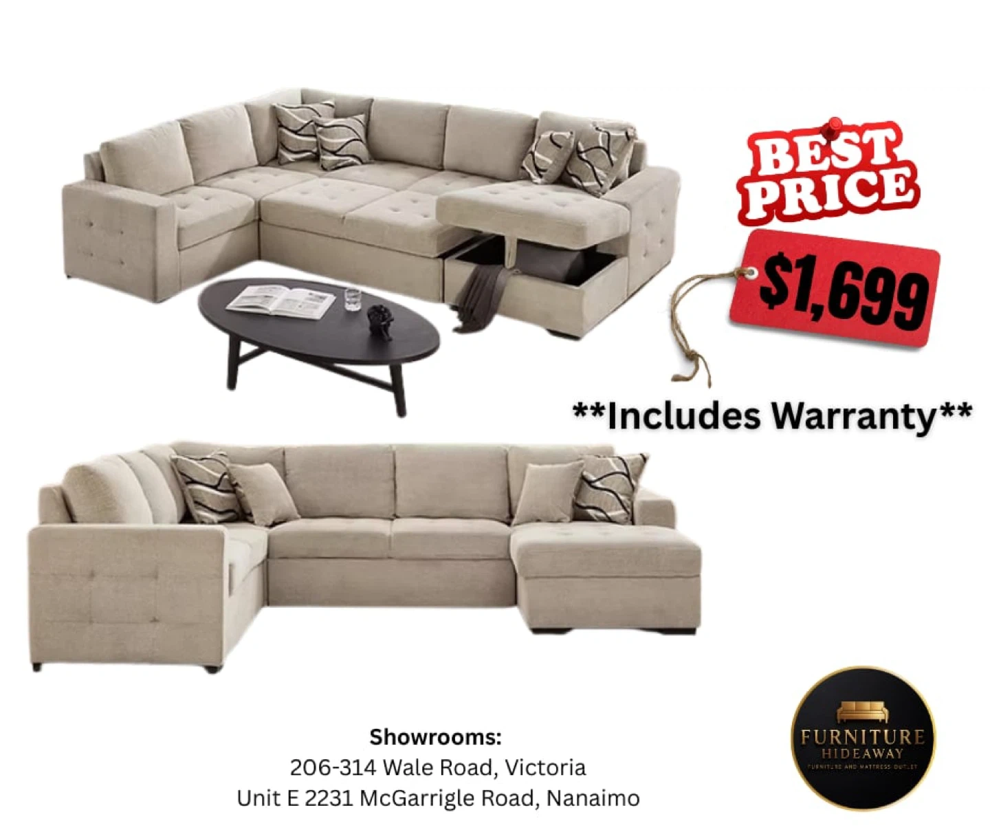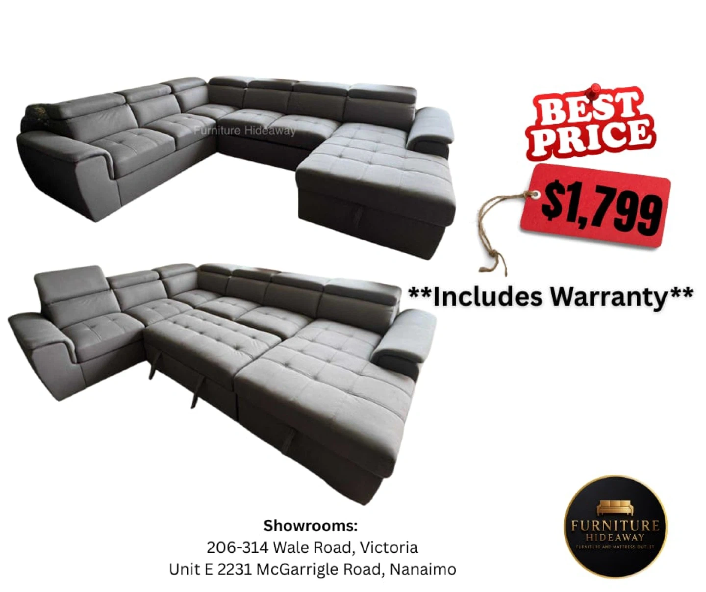 20Sectional sleeper sofa ON SALE NOW‼️ Ranging $1,699- $1,799 Head to our showroom to check the couches and see how comfy and functional they are. ✨ 📍206-314 Wale Road, Victoria 📍Unit E 2231 McGarrigle Road, Nanaimo www.furniturehideaway.ca