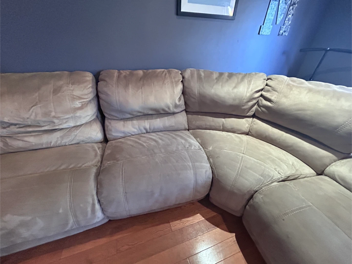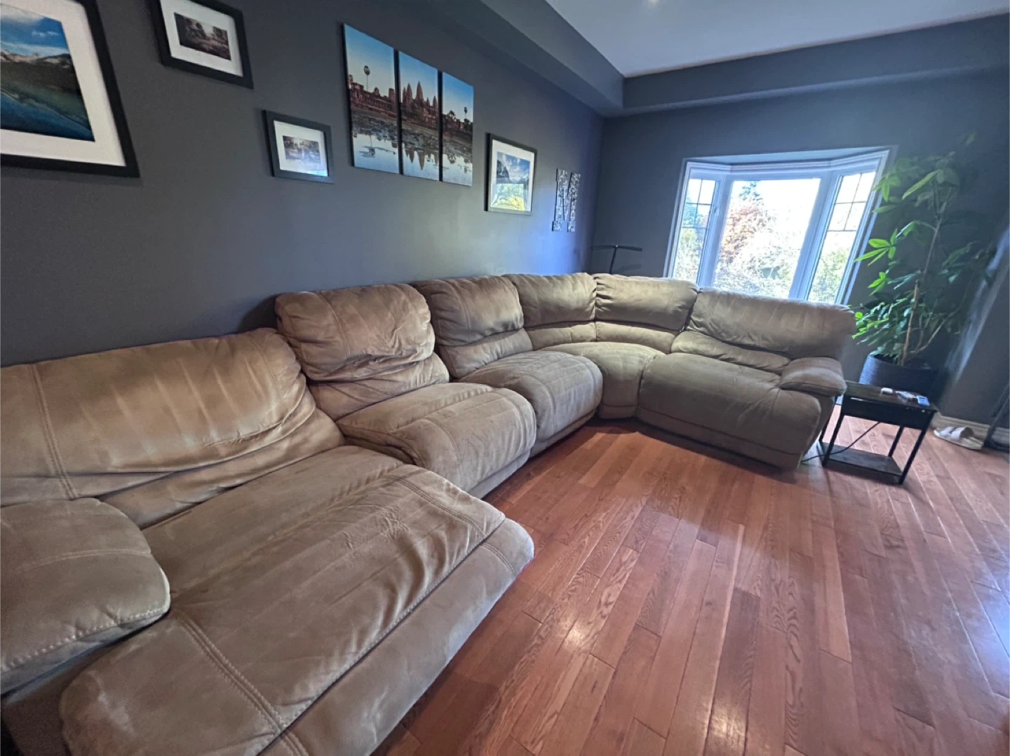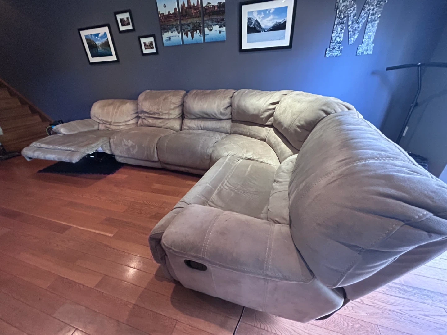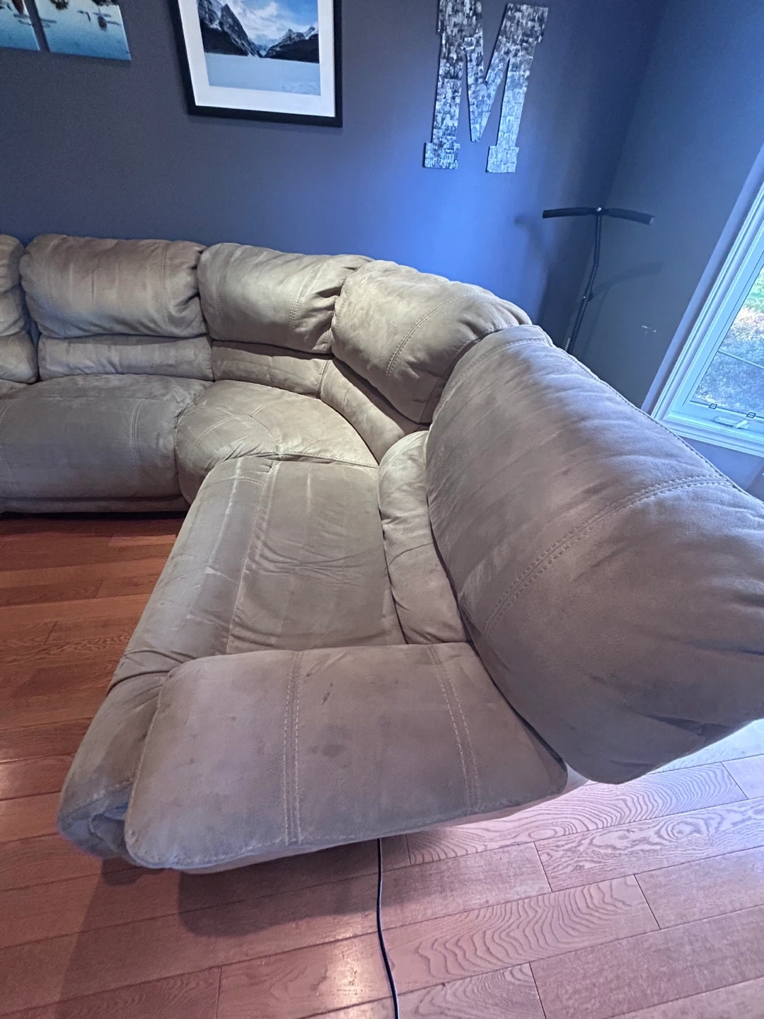 15Selling a large sectional sofa, perfect for a big family or anyone who loves to lounge! It's a beige colour and has a reclining section on both ends, but one end is stuck and won’t close! Selling as is, we don’t know how to fix the recline, but it's still very comfortable and has lots of life left in it. Pick up only. Located near the Costco in Ancaster. Will need a U-Haul to move. Comes apart in sections.