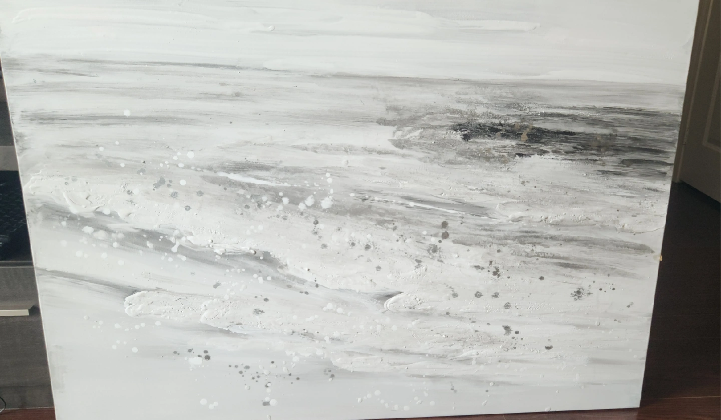 31Large hand-painted abstract in white, grey & silver tones — textured surface with shimmer and movement. Modern minimalist look, ready to hang. $325 OBO – pickup in Toronto. Add a calm and elegant touch to your space with this original textured abstract painting. Hand-painted on stretched canvas using layers of acrylic and metallic pigment, this piece features soft tones of white, grey, and silver with subtle shimmer and movement. The heavy texture and raised strokes create depth and a modern minimalist look. Size: approx. 36″ × 48″ Medium: Acrylic on canvas with metallic accents Condition: Excellent Style: Modern / Abstract / Minimalist Stretched and ready to hang Local pickup only (Toronto area) Perfect for living rooms, offices, or contemporary interiors.