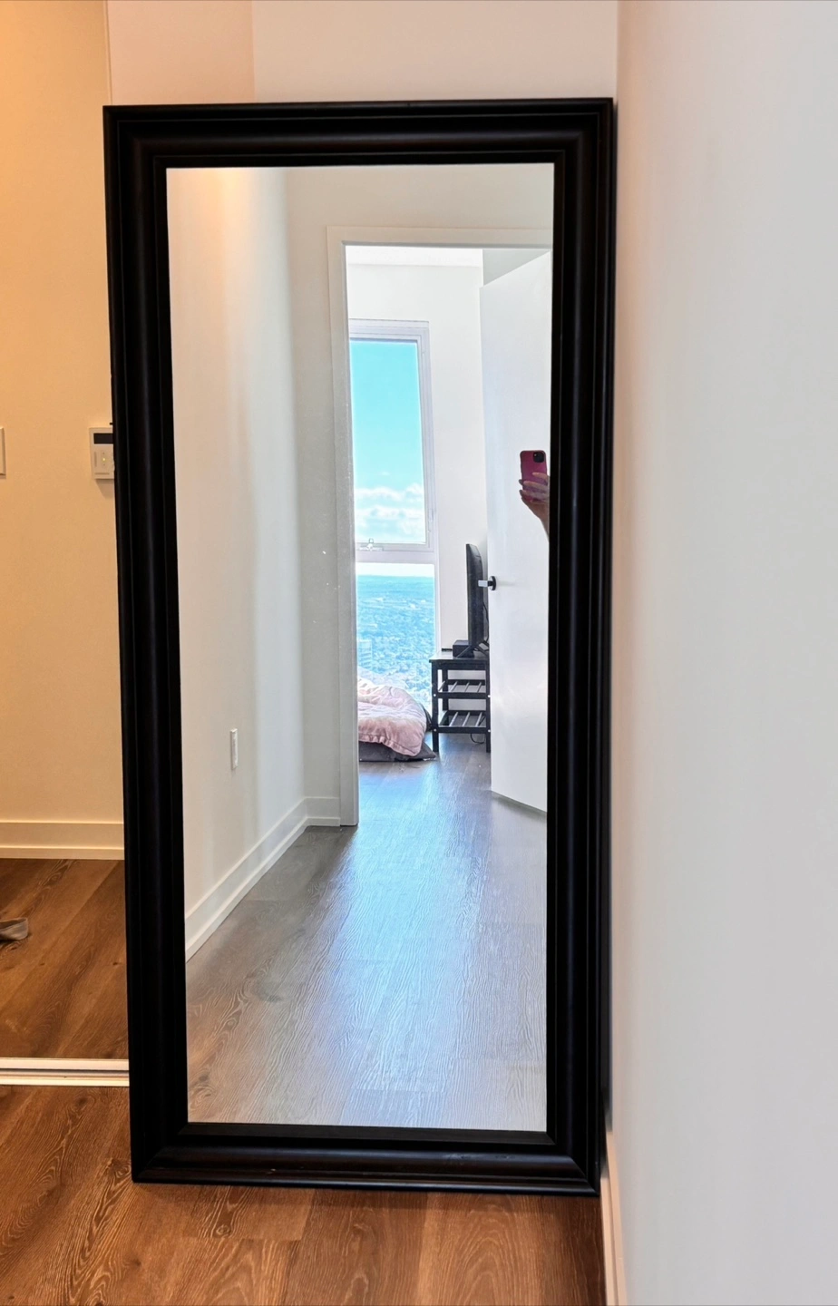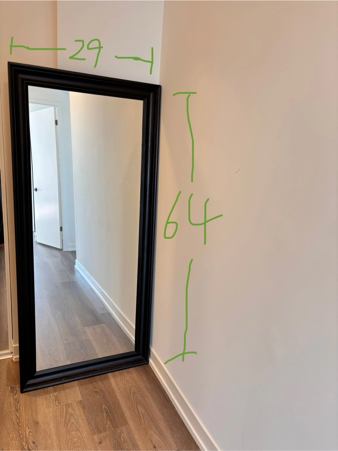 [Solid Wood Full-Length Mirror for Sale] Price: $150 (Negotiable) • Dimensions: 29” W × 64” H × 1.6” D • Color: Dark brown (almost black) • Material: Solid wood frame • Condition: Sturdy, well-maintained, and in very good shape with minimal signs of use. • Features: Large full-length size, perfect for bedrooms, entryways, or as a stylish interior piece.